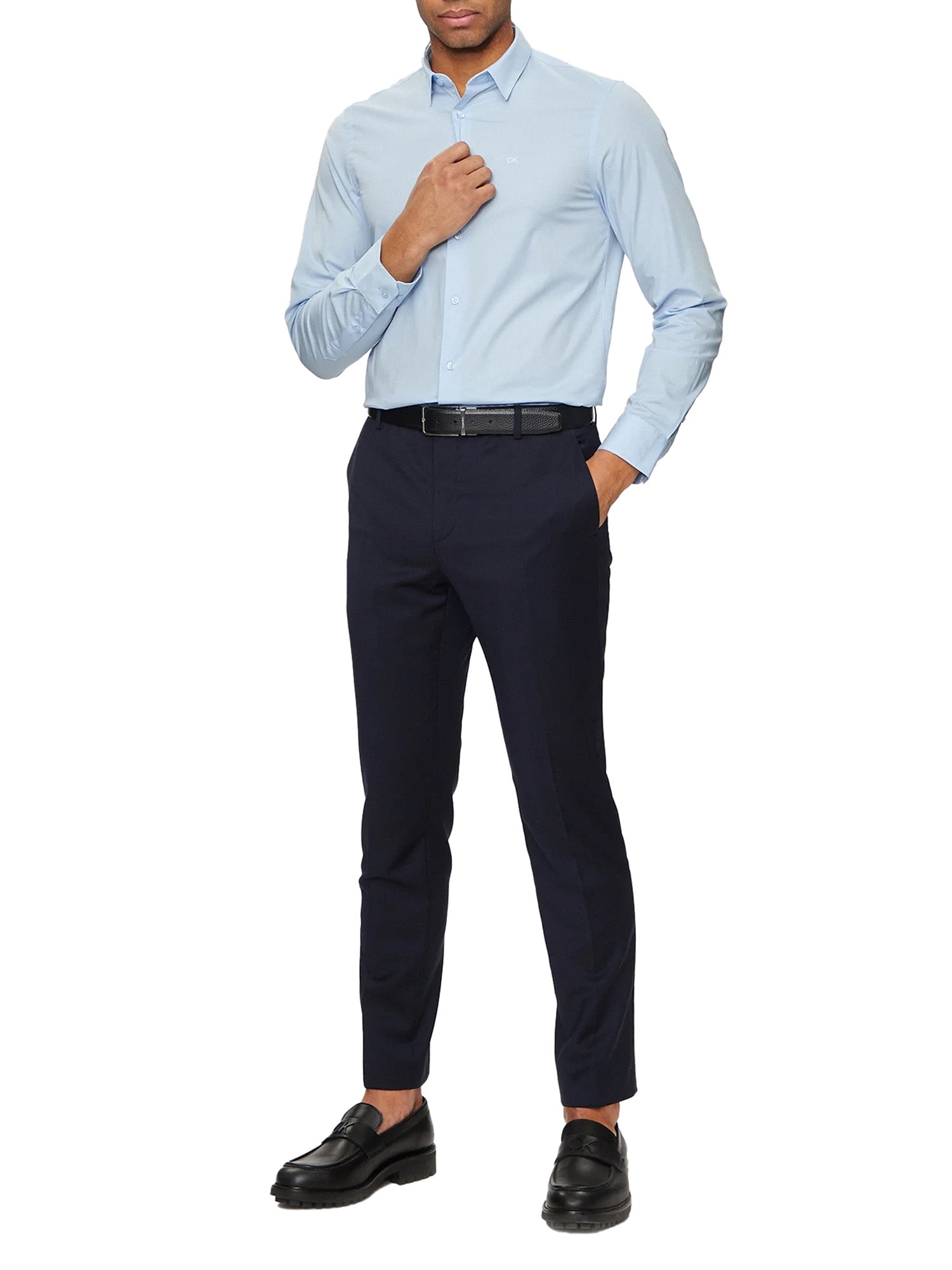 Camicia manica lunga slim popeline celeste