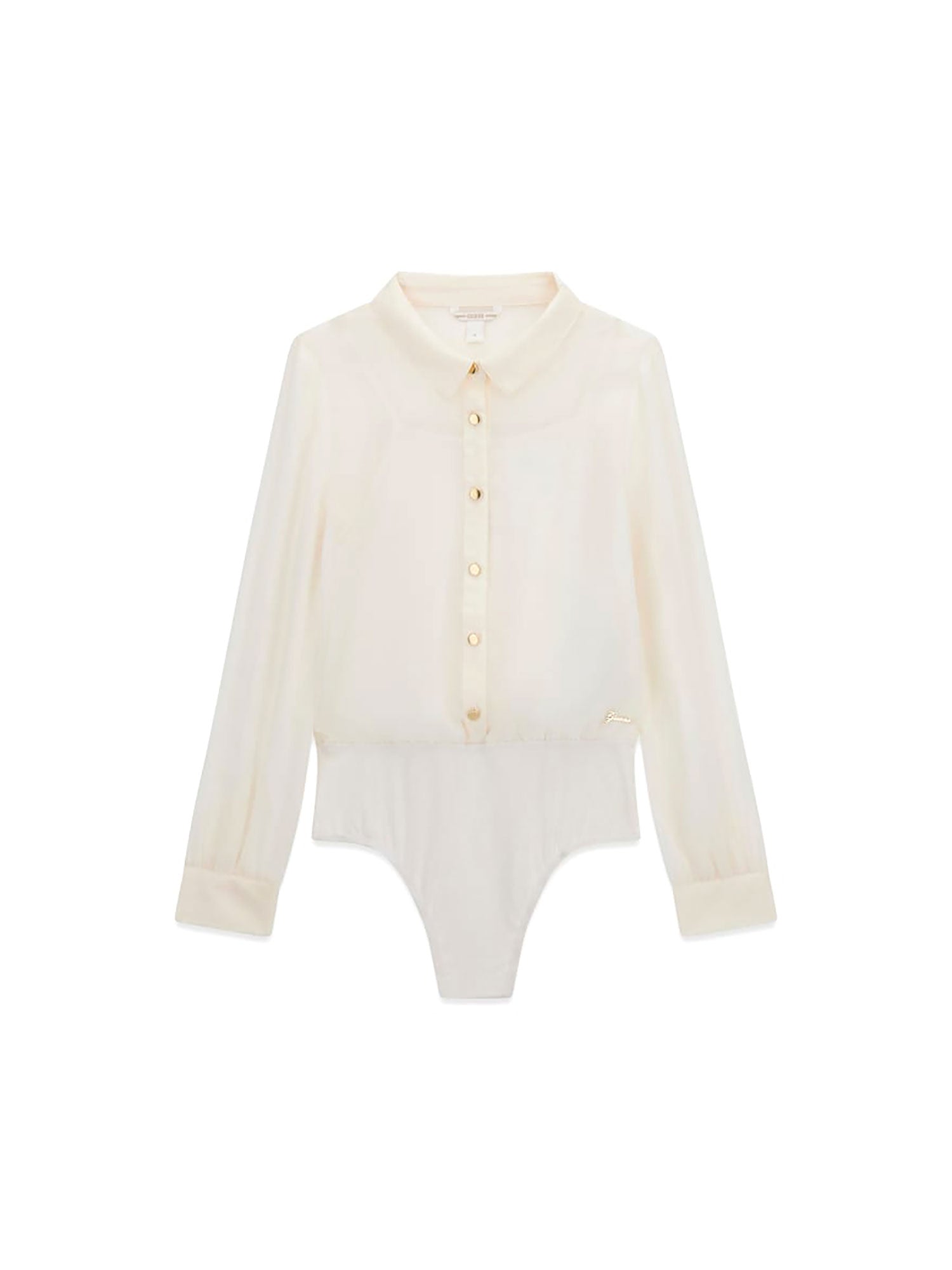 Camicia body Guess bambina realizzata in leggero chiffon, perfetta per occasioni eleganti o look raffinati. Il design unisce la raffinatezza della camicia alla praticità del body per una vestibilità impeccabile.<br>- Tessuto fluido e semitrasparente<br>- Colletto classico e bottoni dorati frontali<br>- Polsini con bottone<br>- Elastico in vita per un fit confortevole<br>- Logo Guess metallico sul fianco
