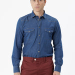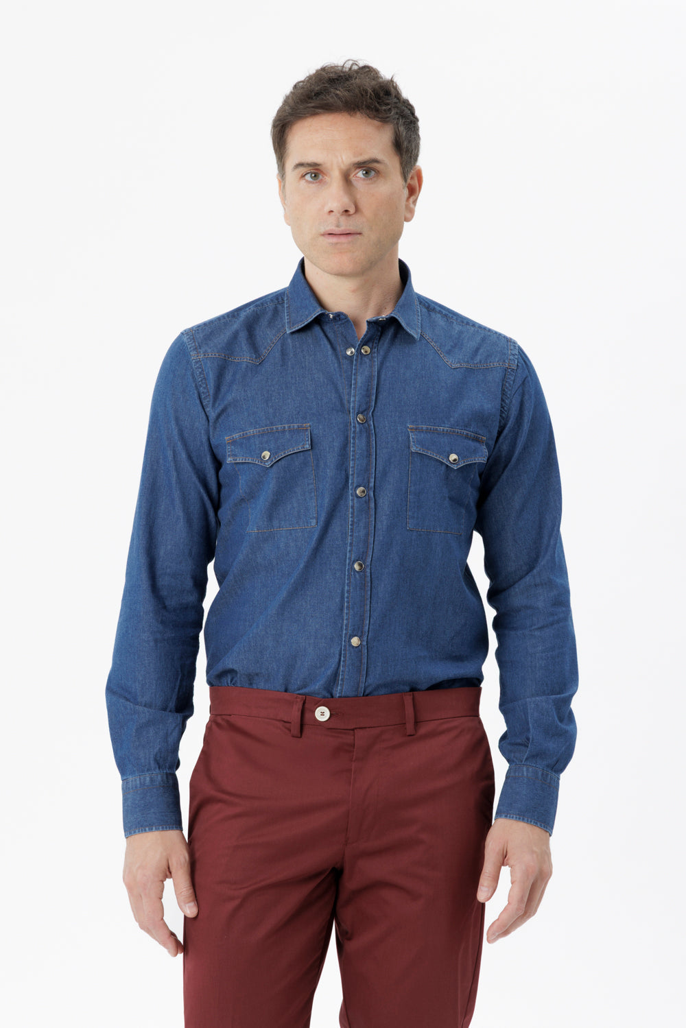 Ispirata alle classiche camicie western, questa camicia in denim interpreta con modernità un’icona dello stile casual. Il taglio regolare e i dettagli curati – come i bottoni automatici in metallo, le cuciture a contrasto e le doppie tasche con pattina – conferiscono al capo un carattere deciso ma versatile.