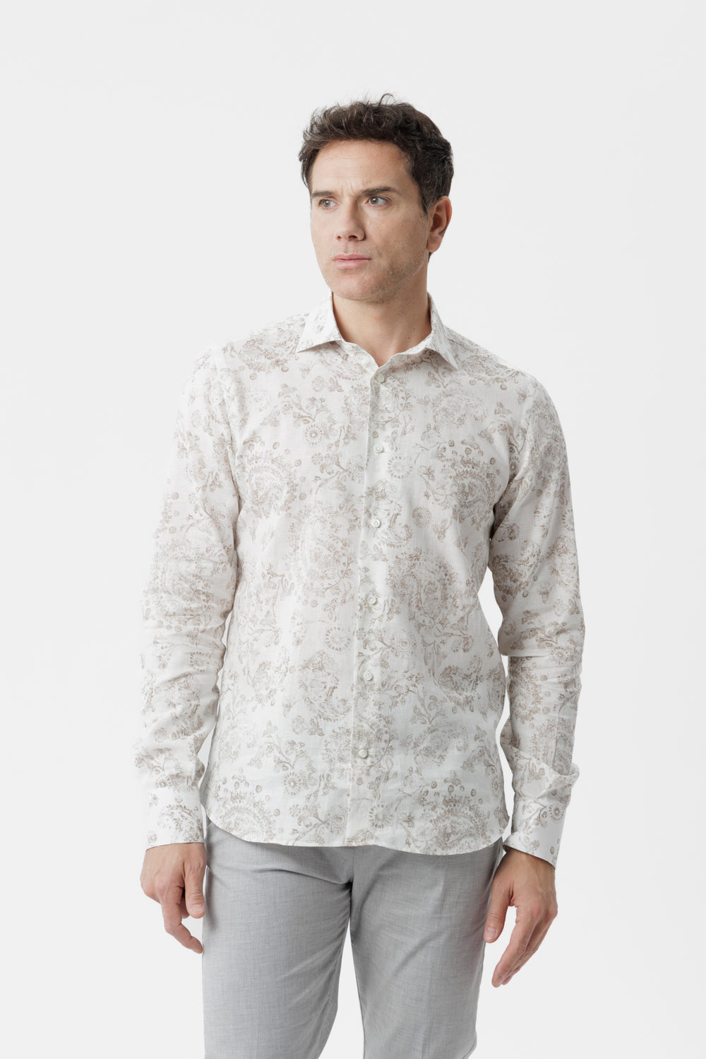 Camicia lino cotone fantasia paisley ecrù