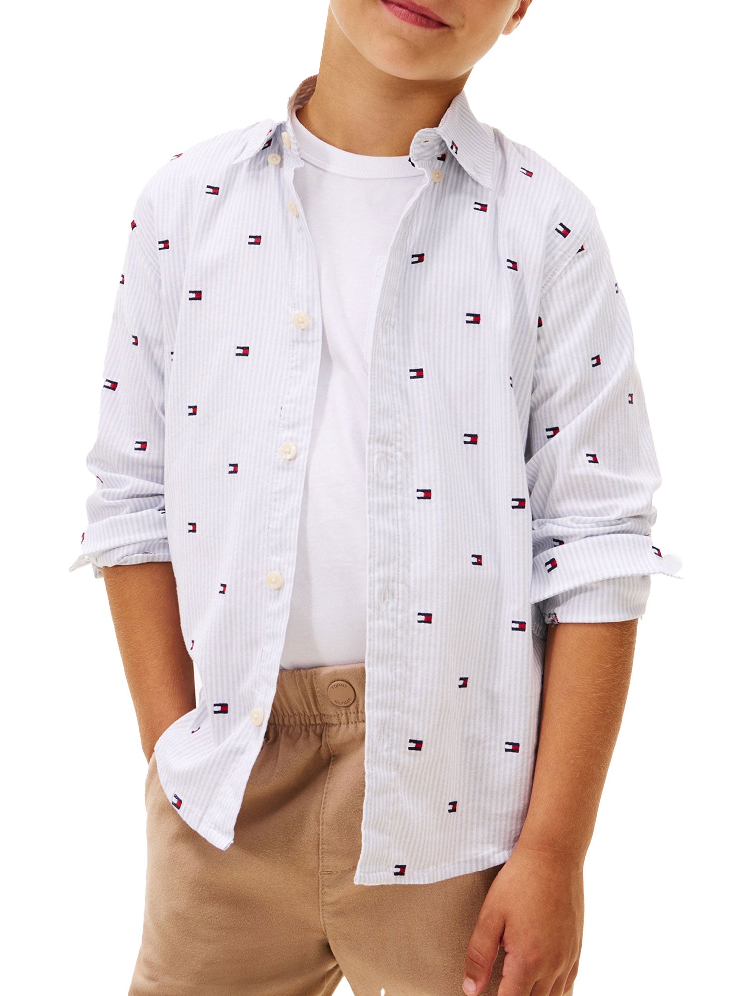 Camicia Tommy Hilfiger ragazzo Ithaca flag embroidery righe celeste