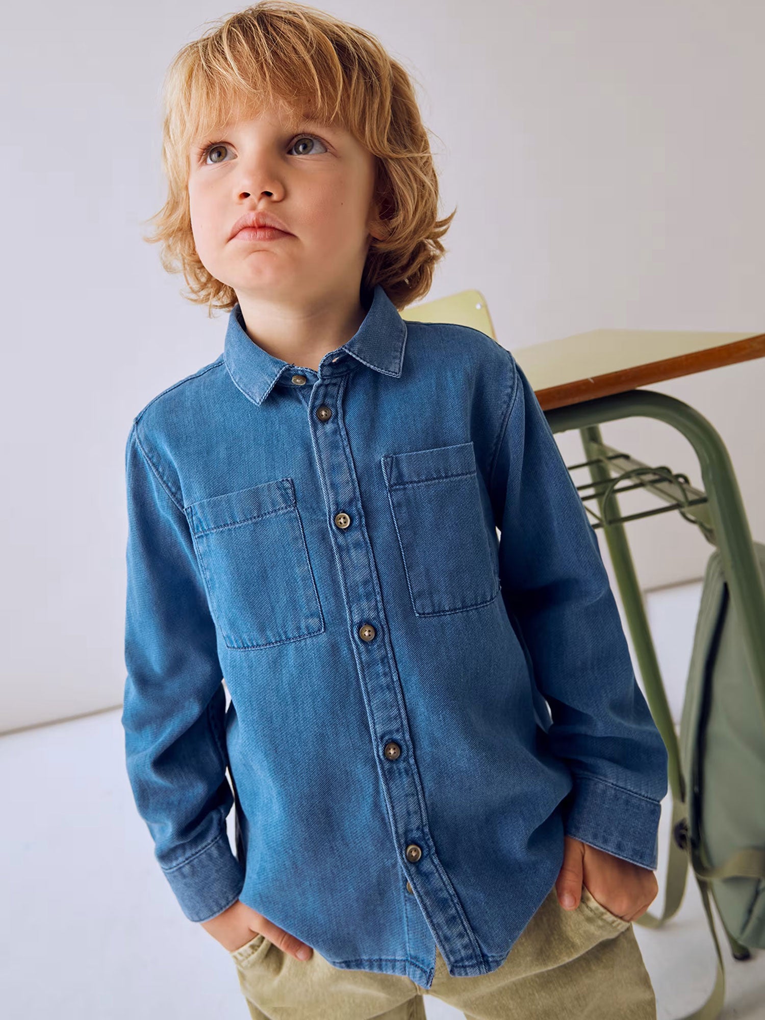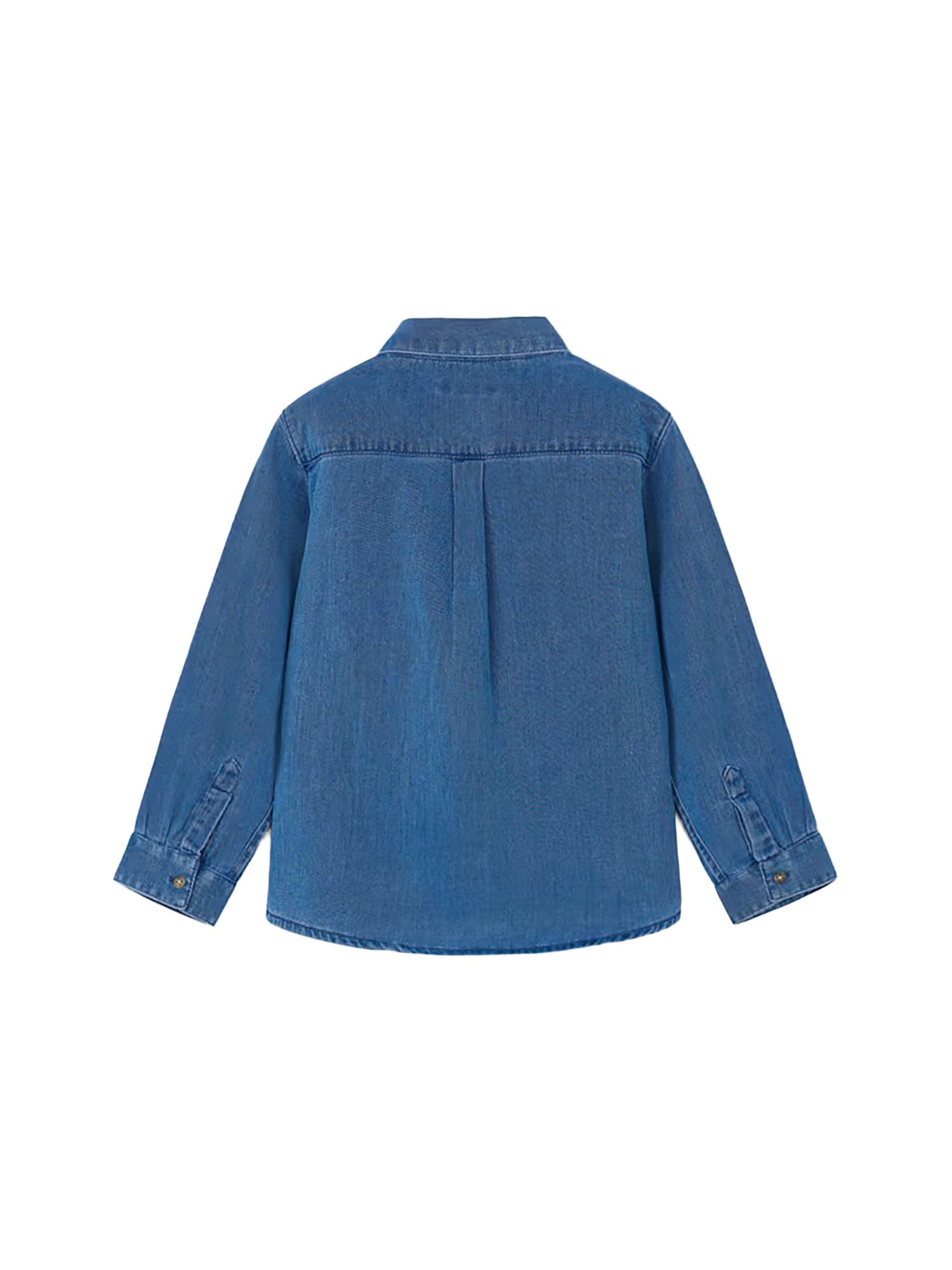Camicia jeans Mayoral bambino a manica lunga. Realizzata in un morbido mix di lyocell e cotone, ideale per un look curato ma confortevole. Il colletto modello camicia e la chiusura frontale con bottoni rendono questo capo pratico e versatile.