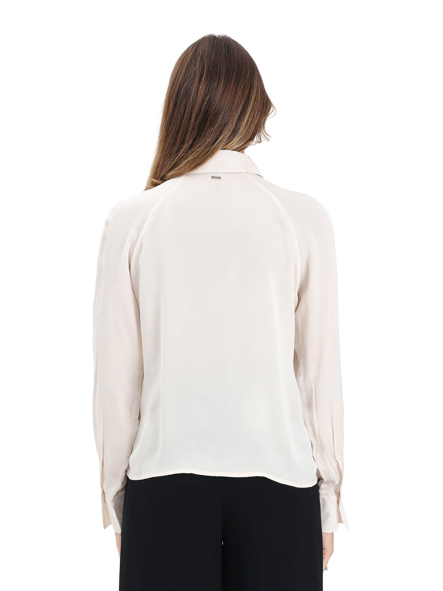 Camicia Armani Exchange donna bottoni tono su tono in raso panna