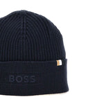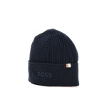 Berretto da uomo Boss, realizzato in un mix di lana e cotone, è un capo elegante e funzionale per la stagione fredda. La trama a coste dona una texture ricercata, mentre il risvolto con il logo Boss ricamato aggiunge un tocco distintivo senza essere troppo vistoso. Il colore blu lo rende facile da abbinare a qualsiasi outfit, rendendolo un accessorio versatile che unisce praticità e stile.