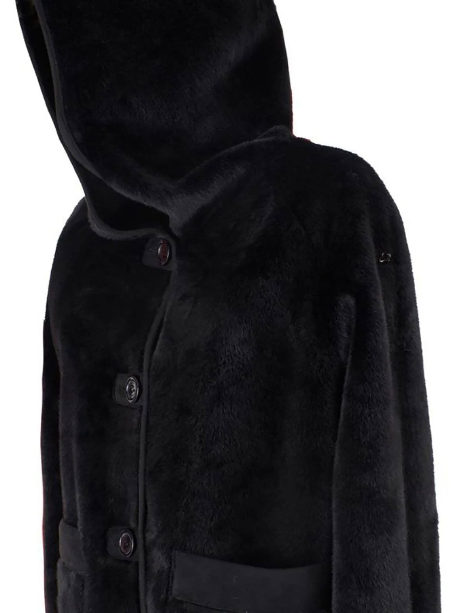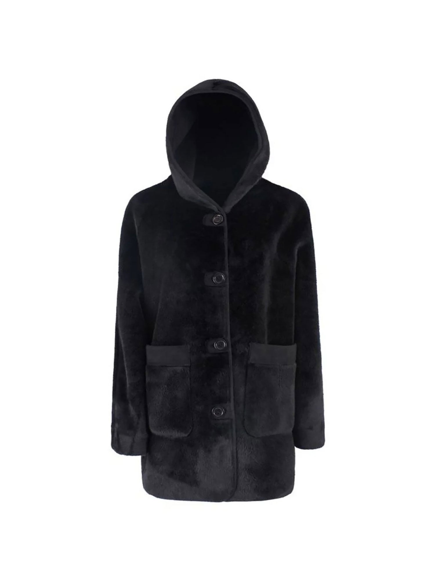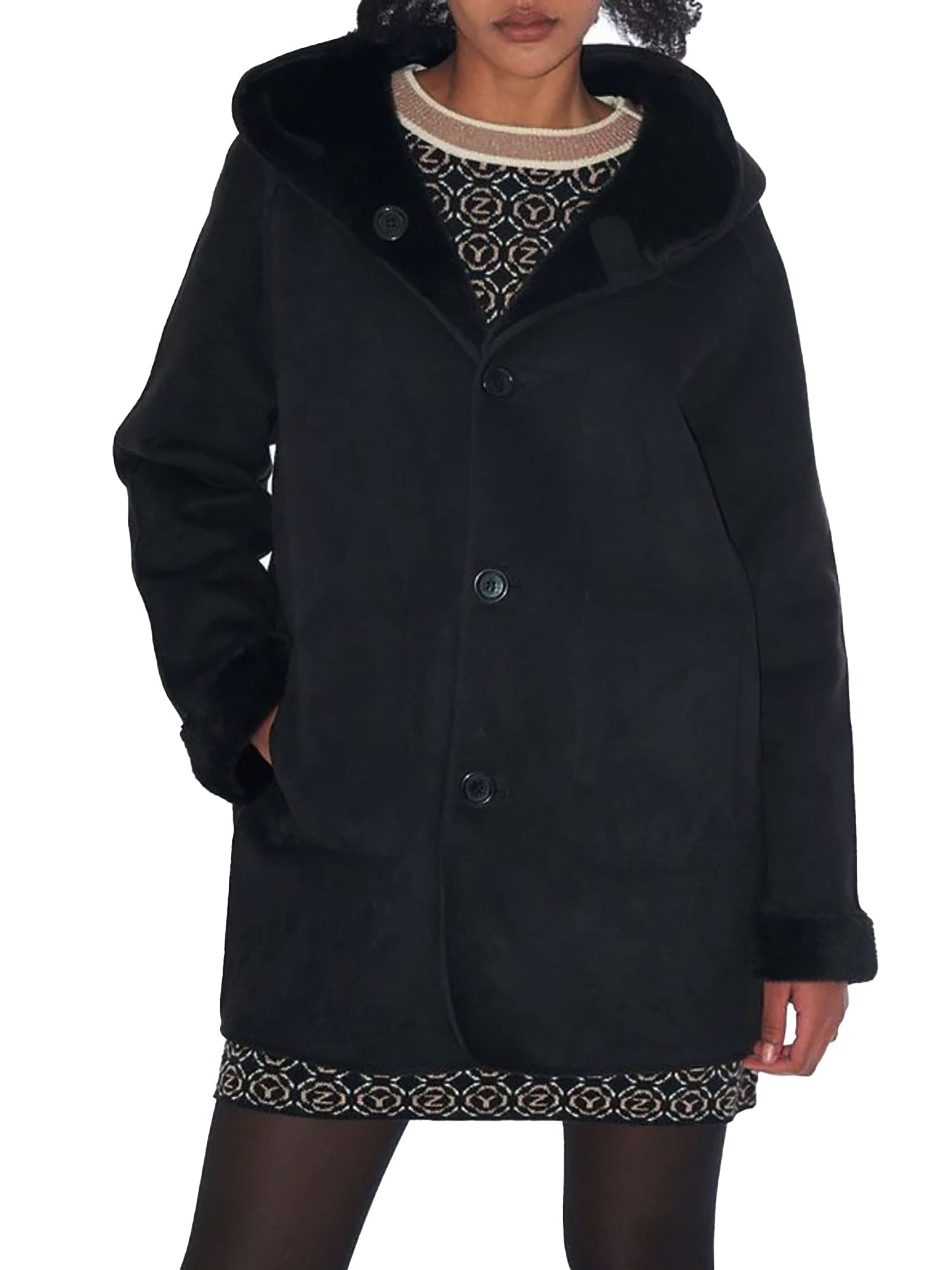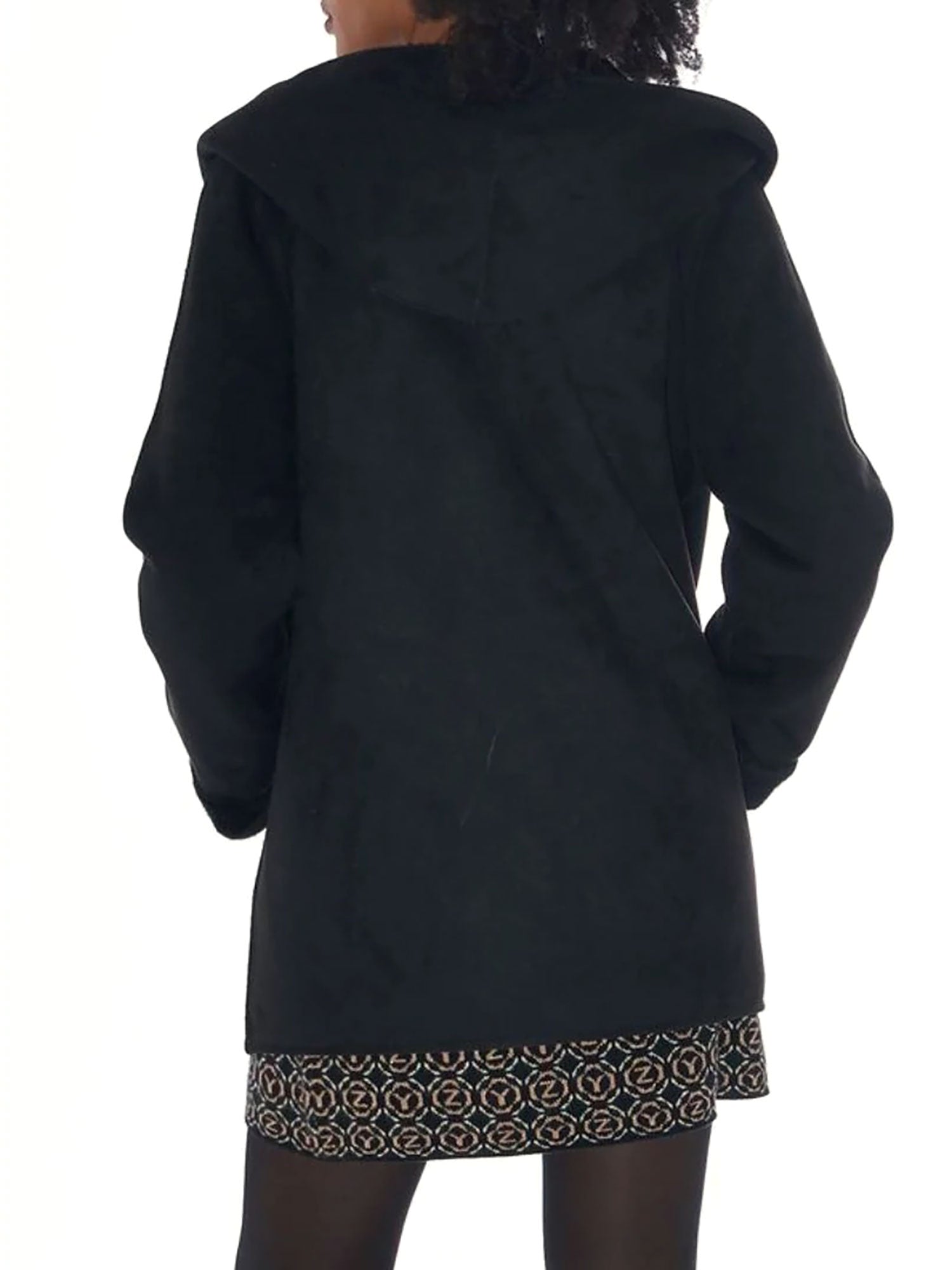 Cappotto Yes Zee donna reversibile teddy con cappuccio nero