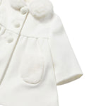 Cappottino in panno per neonata Mayoral, dal design raffinato e delicato. Il cappottino presenta un colletto morbido in pelliccia sintetica, che aggiunge un tocco lussuoso e accogliente al capo.