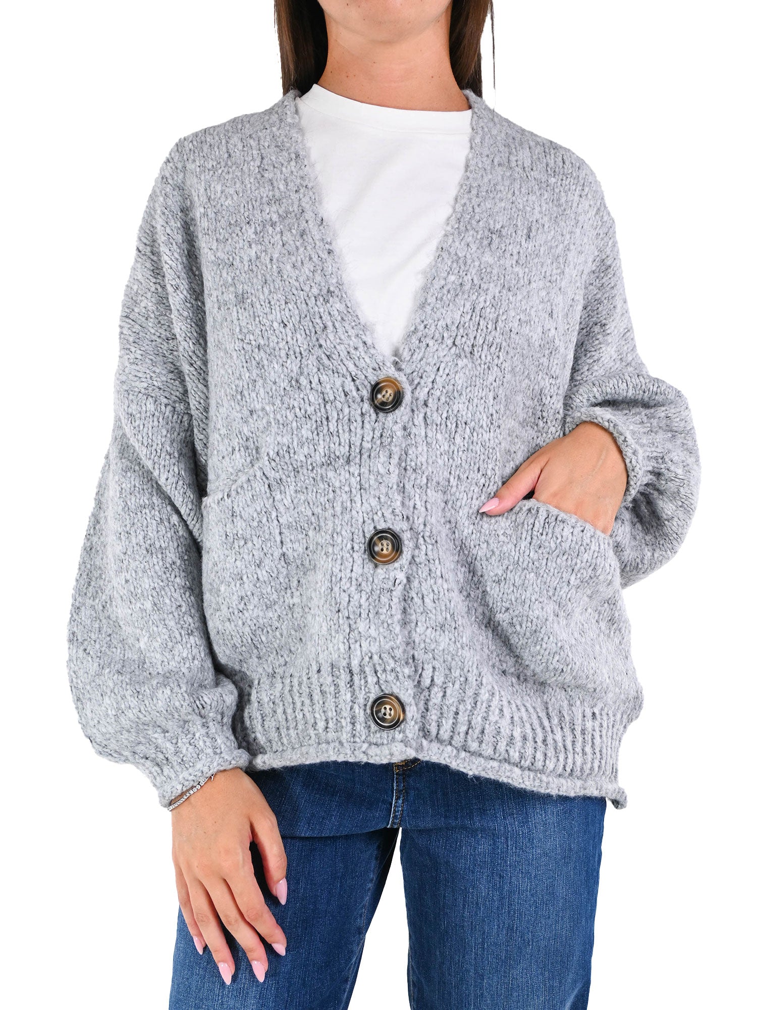 Cardigan Haveone donna con bottoni e maniche a sbuffo perla