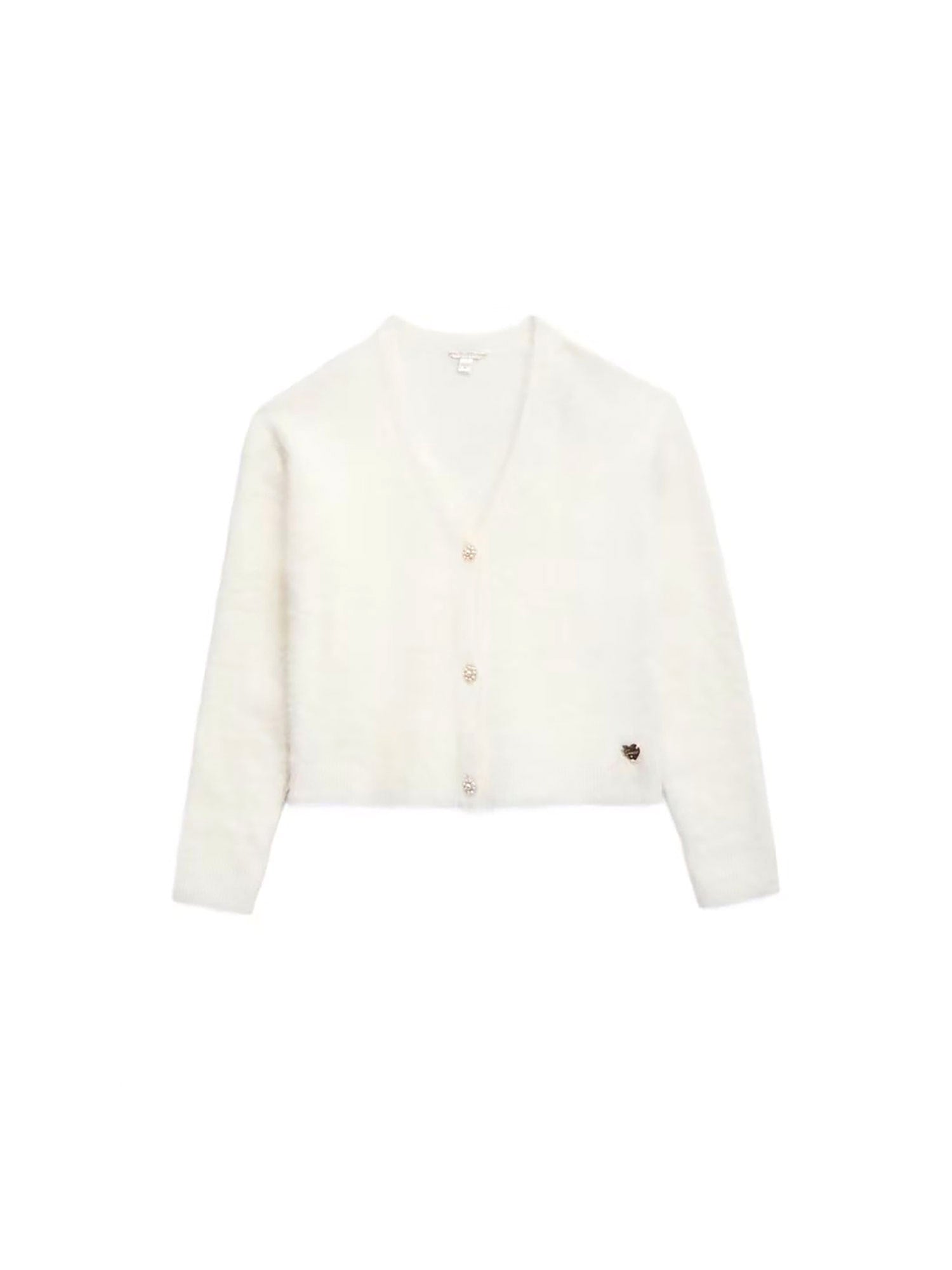Cardigan peloso con bottoni gioiello Guess ragazza crema