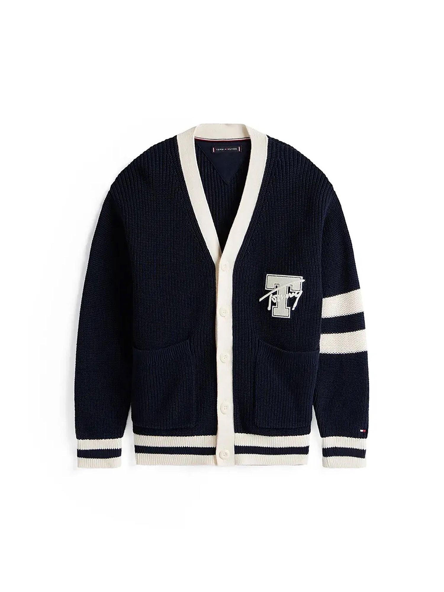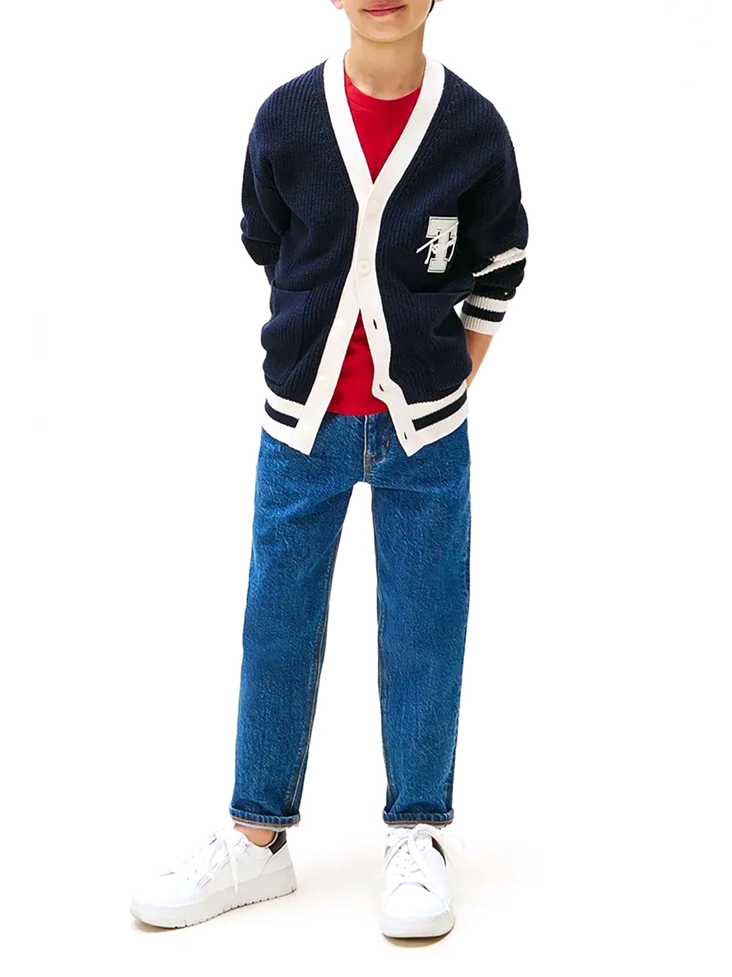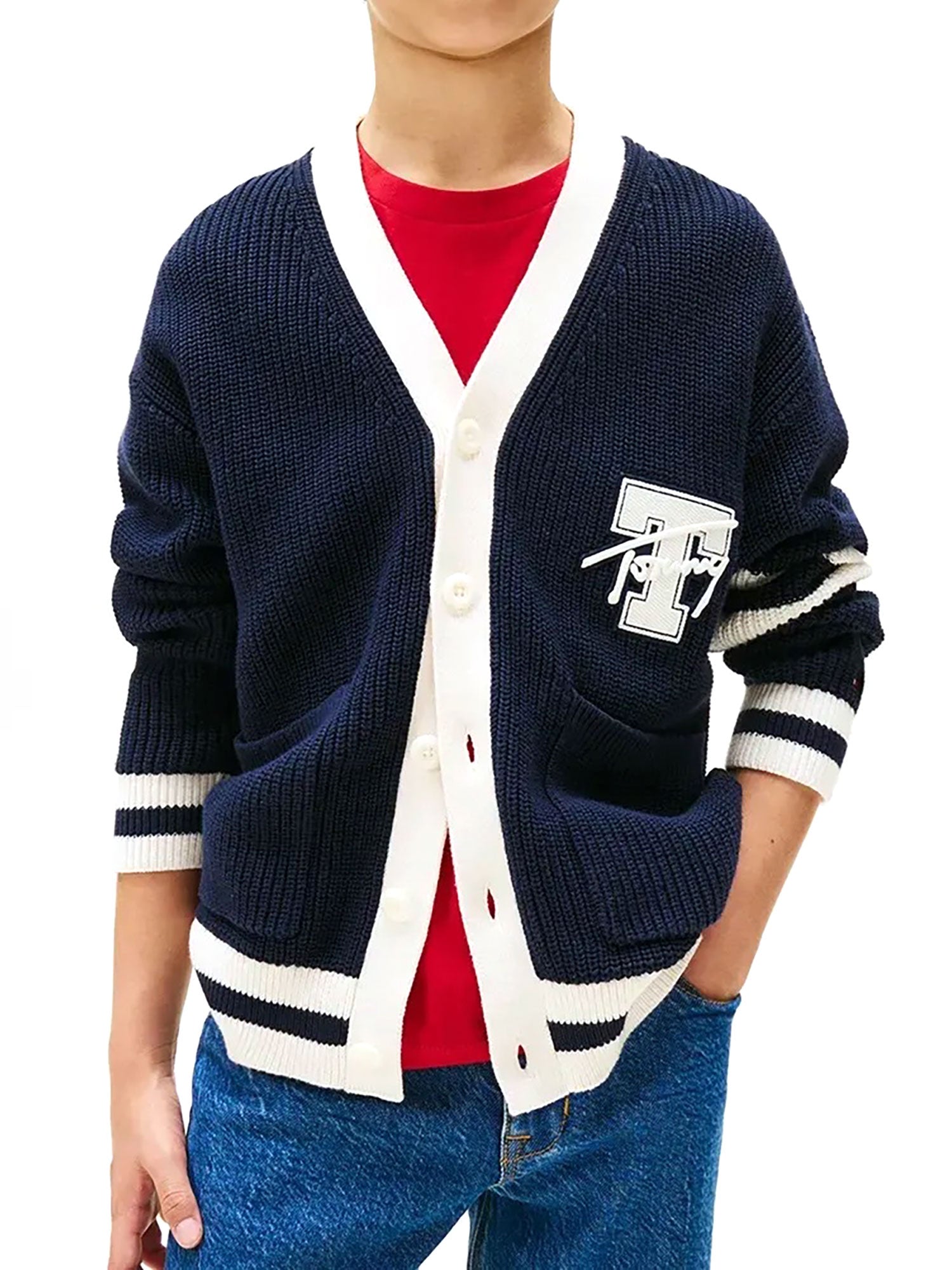 Cardigan con bottoni Tommy Hilfiger ragazzo varsity graphic blu
