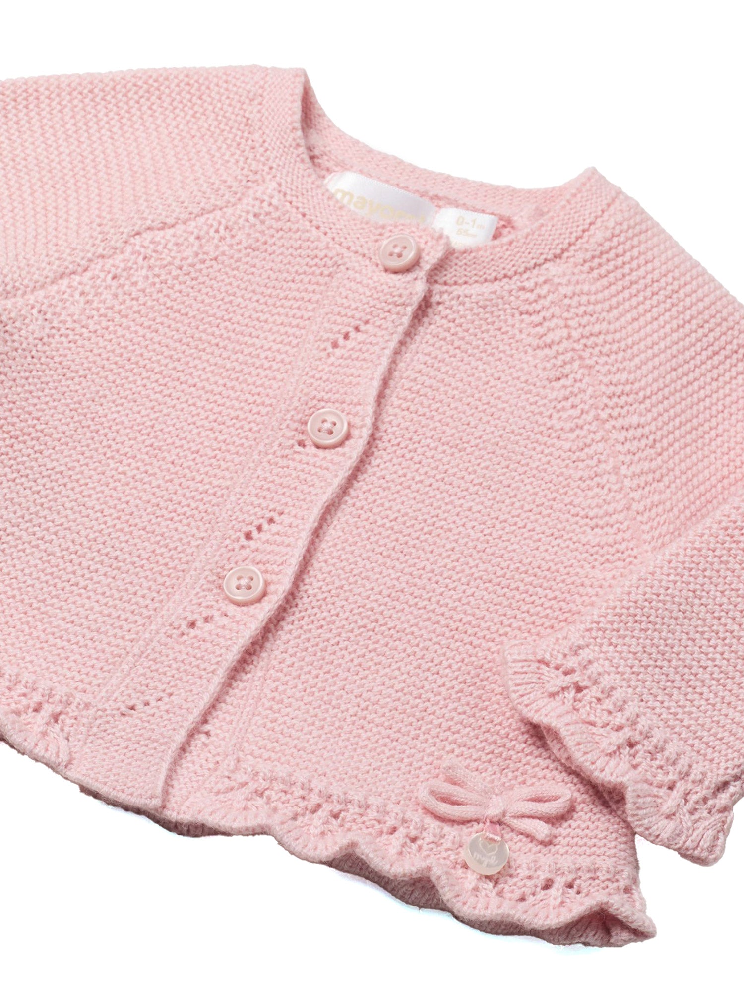 Cardigan da neonata Mayoral in maglia rosa, ideale per le uscite quotidiane o per un look elegante e pratico, abbinabile a diversi outfit.