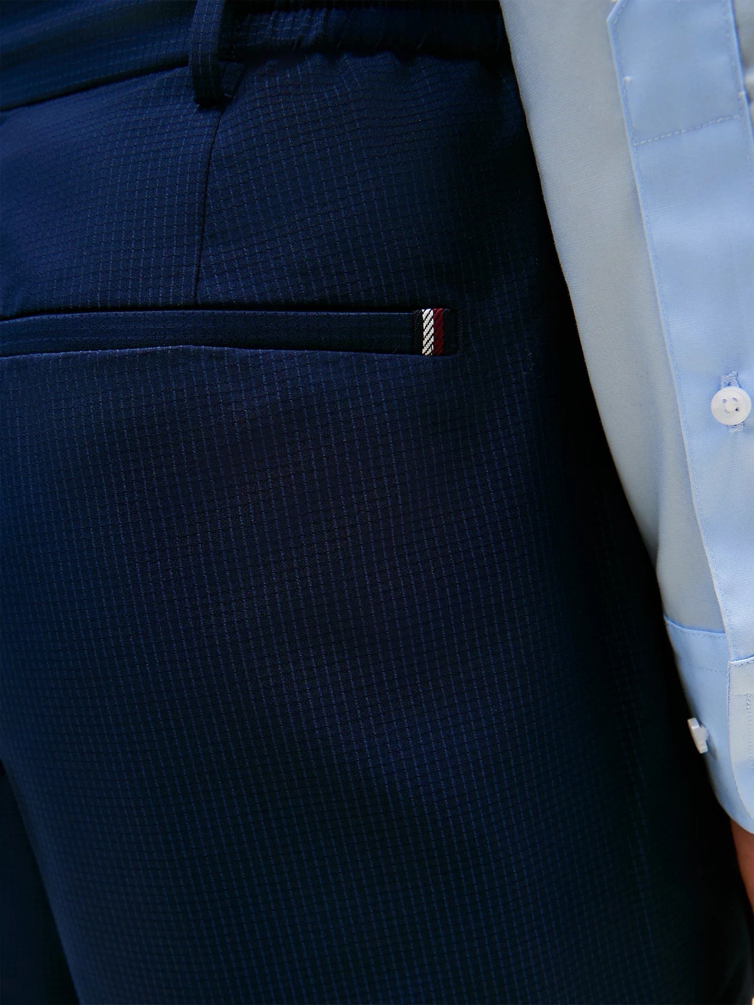Pantalone chino Tommy Hilfiger modello airdot blu Pantaloni tecnici, realizzati in tessuto Air Dot, che presentano un'elegante vestibilità affusolata e sono ideali per qualsiasi attività durante il giorno. - Tessuto Air Dot
