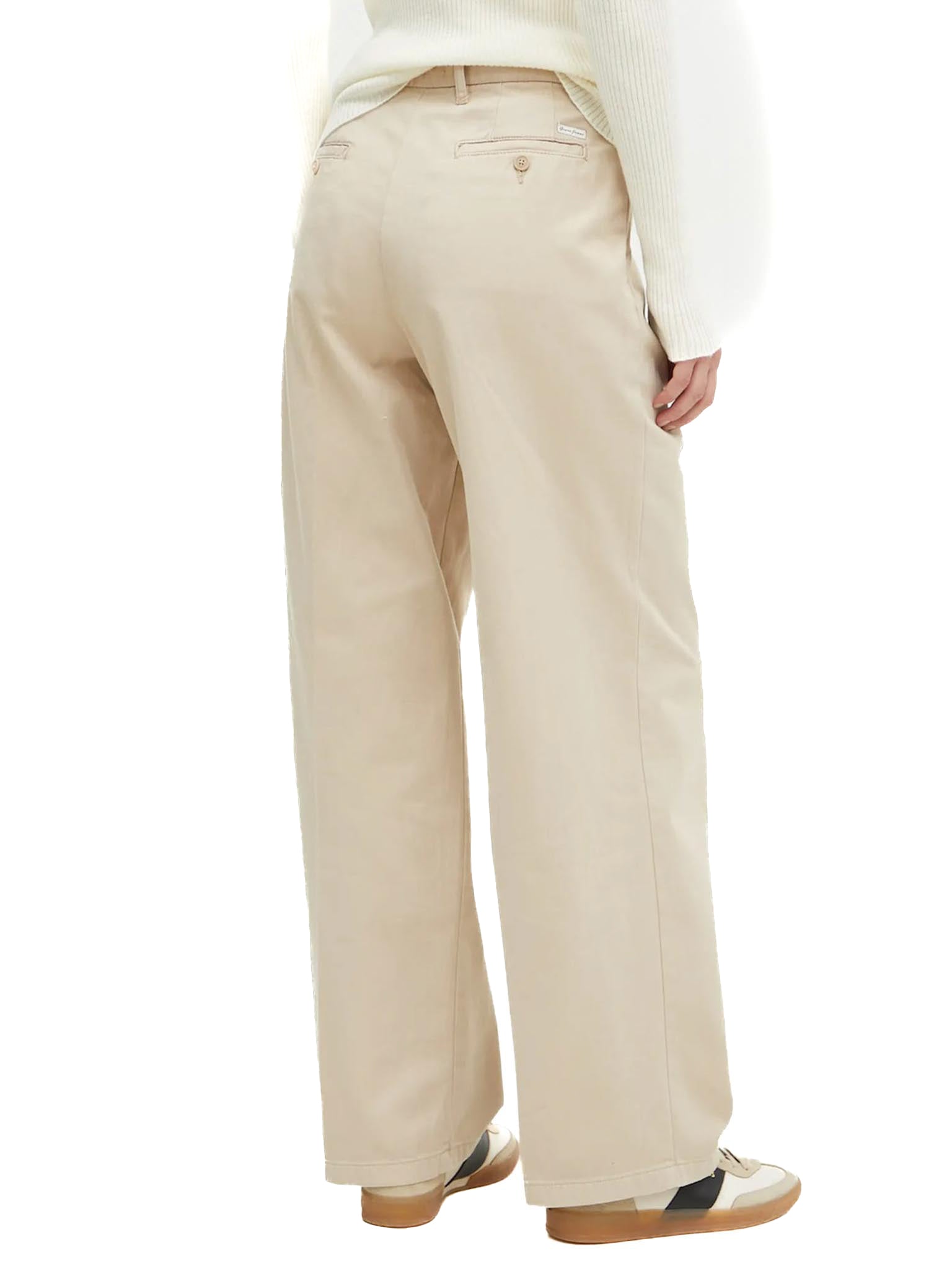 Linee morbide e taglio maschile per un pantalone che abbina eleganza e comfort quotidiano. Il modello wide leg si distingue per la vita media con pinces frontali e una struttura rilassata, perfetta per look raffinati ma disinvolti. Il twill di cotone garantisce una piacevole sensazione sulla pelle, mentre il design minimal lo rende facile da abbinare, dalla maglia in lana al blazer destrutturato.