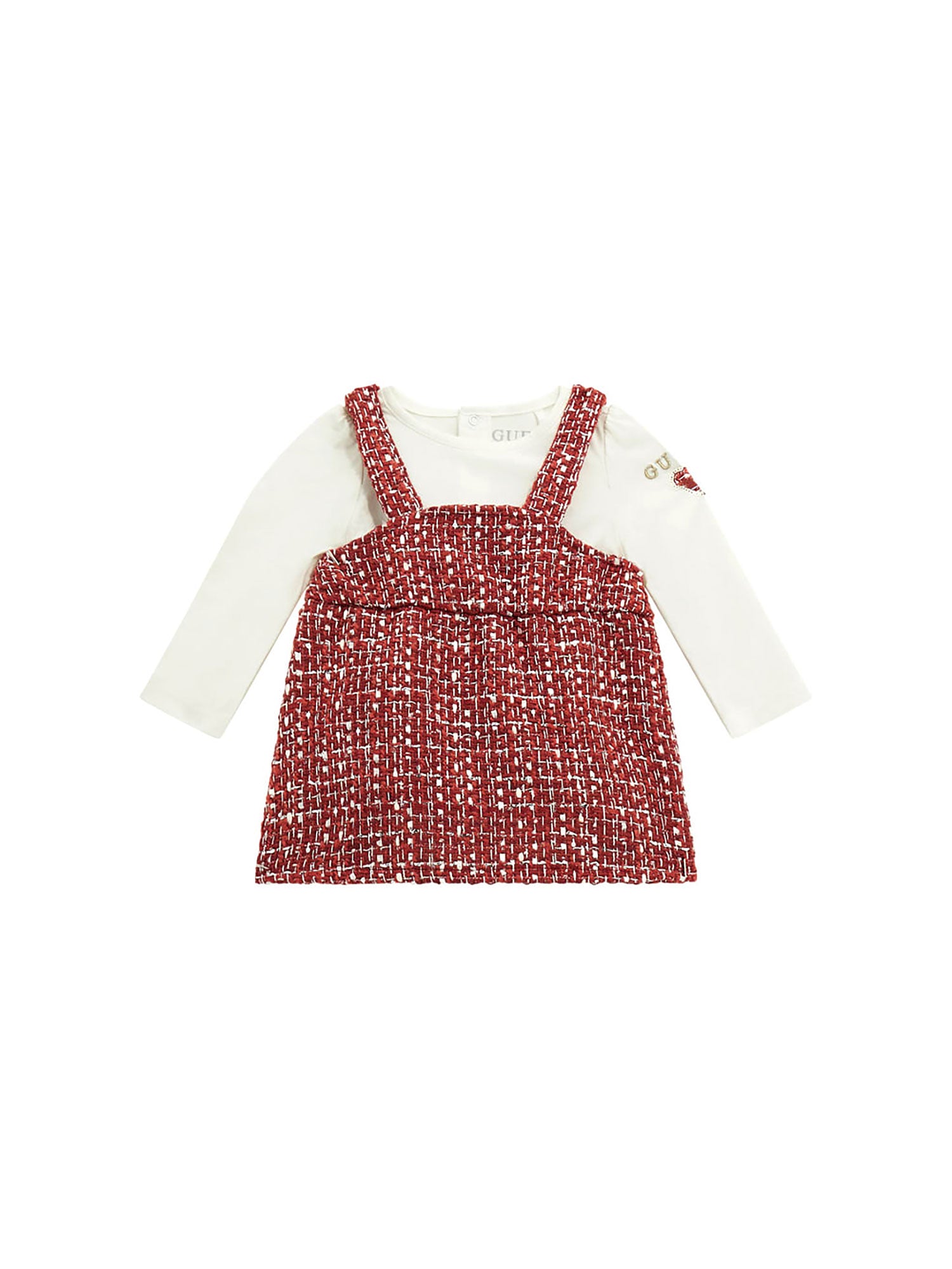 Completo 2 pz Guess neonata body e salopette in tweed crema/rosso