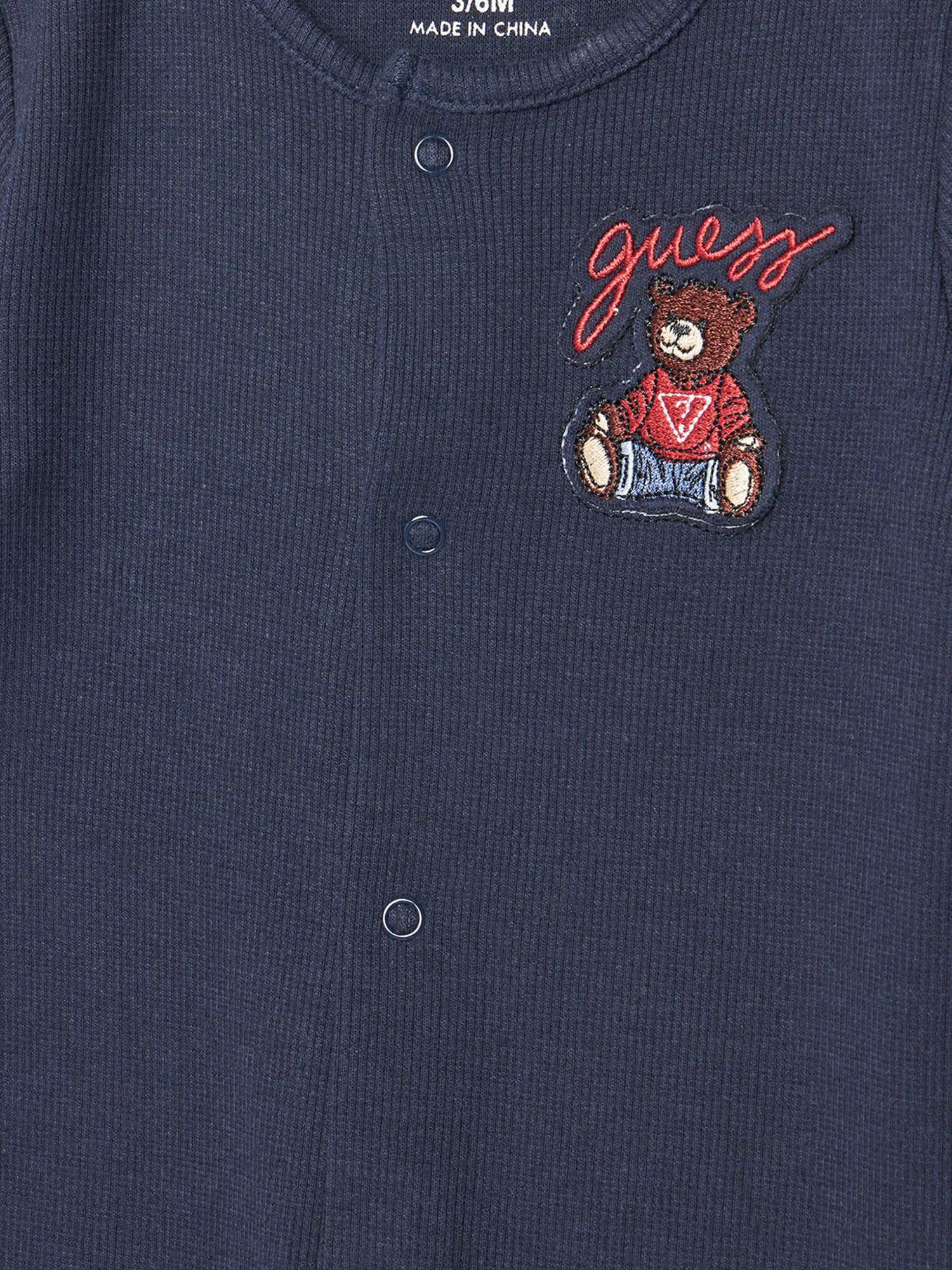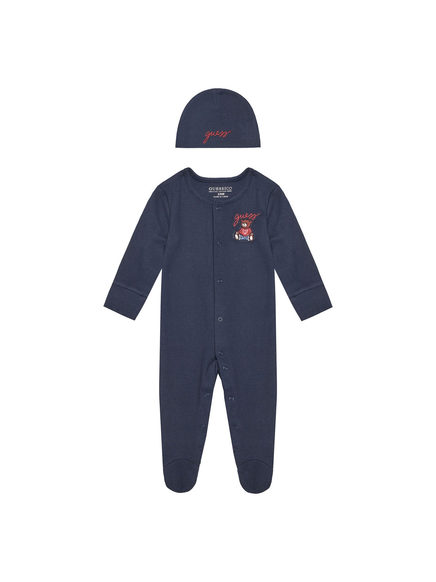Completo 2 pz Guess neonato tutina piedi e cappellino ricamo teddy blu