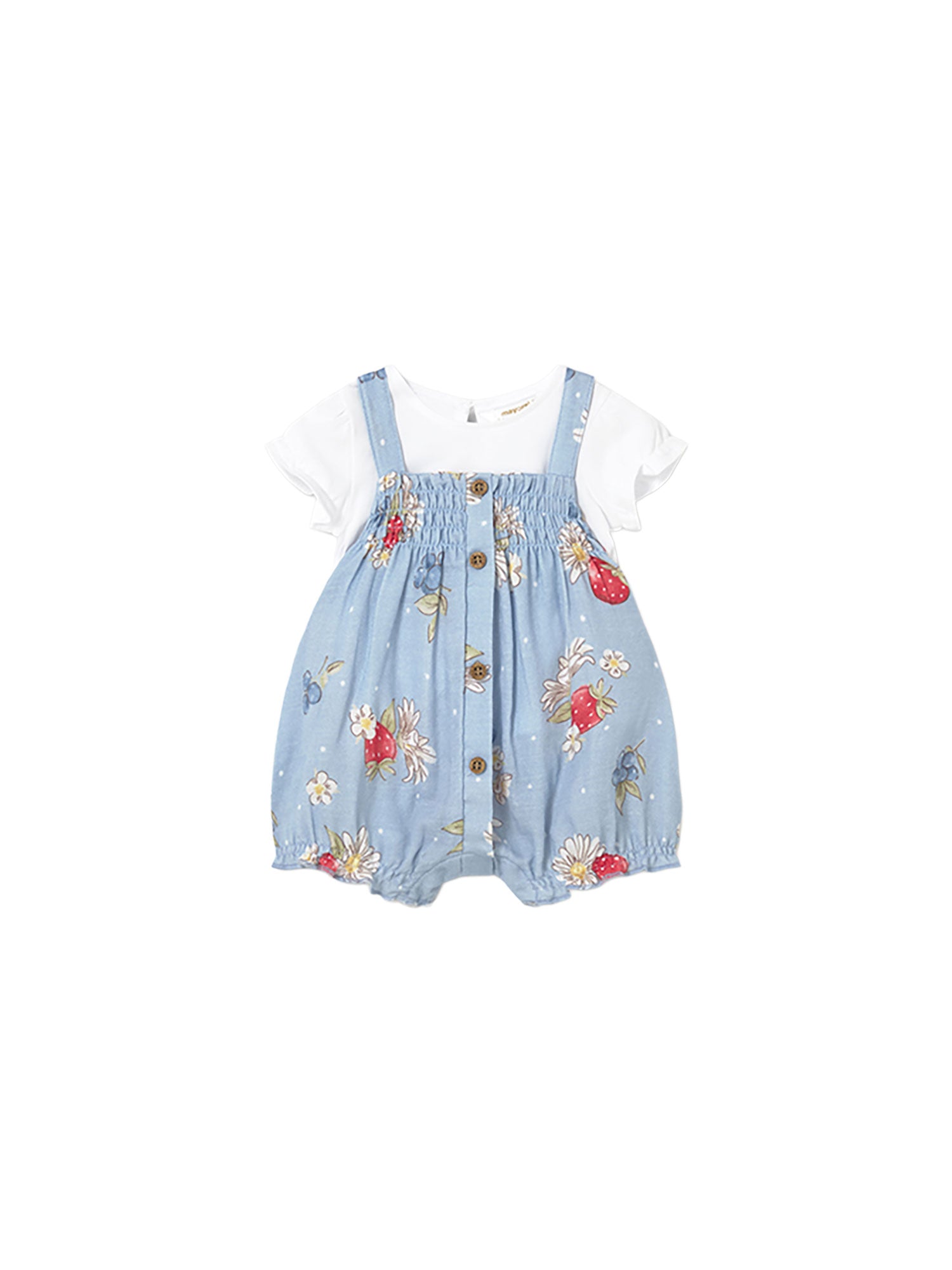 Completo Mayoral estivo dolce e vivace, pensato per vestire la neonata con comfort e un tocco di allegria nelle giornate più calde.