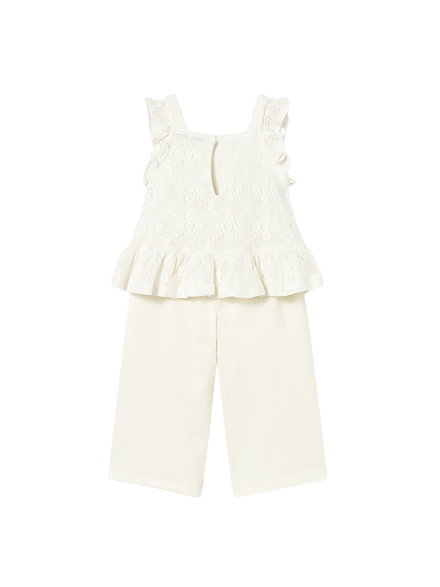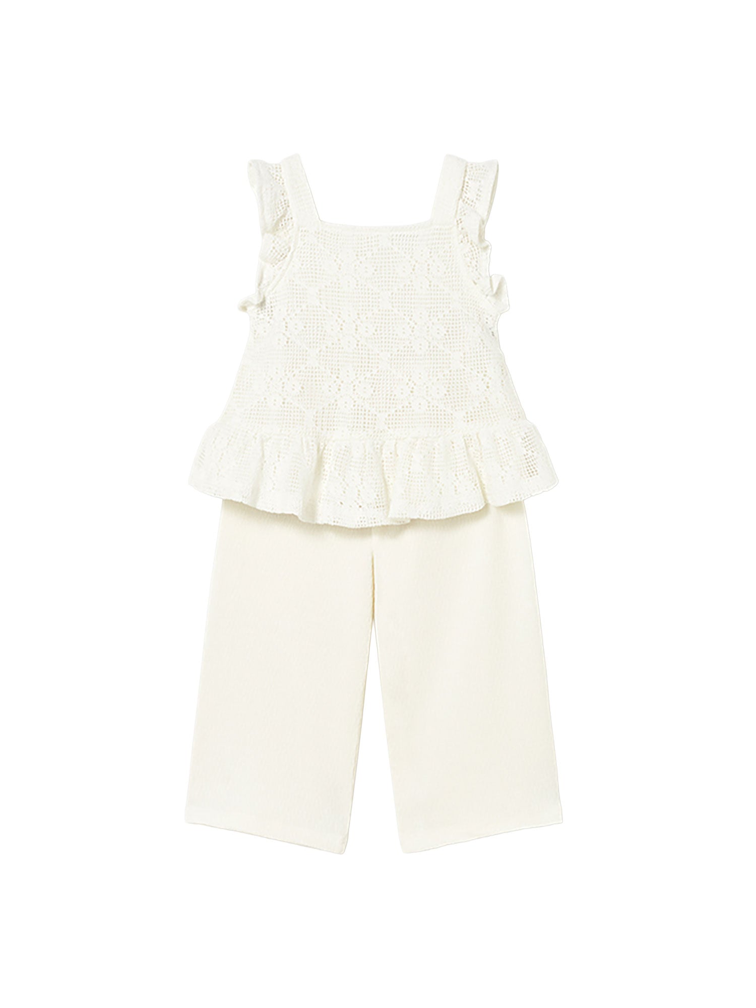 Completo Mayoral Bambina top e pantalone combinato ecrù