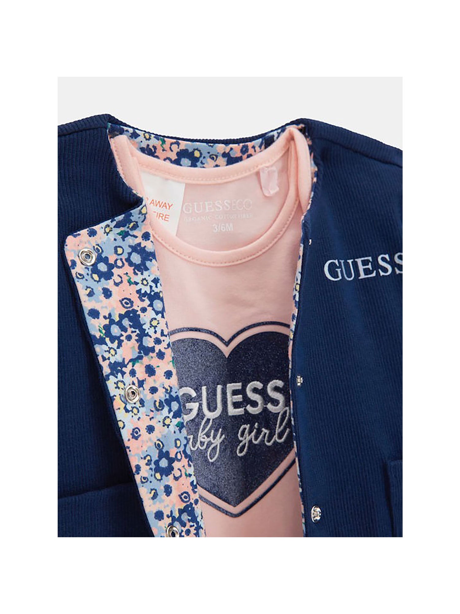 Ccompleto 3 pz Guess neonata cardigan, pantalone e body reversibile blu