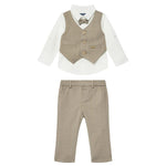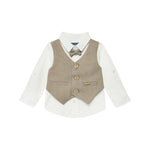 Completo cerimonia neonato camicia, finto gilet e pantalone beige