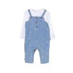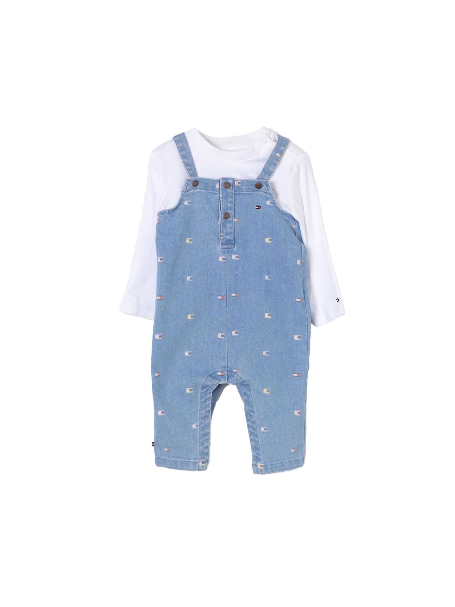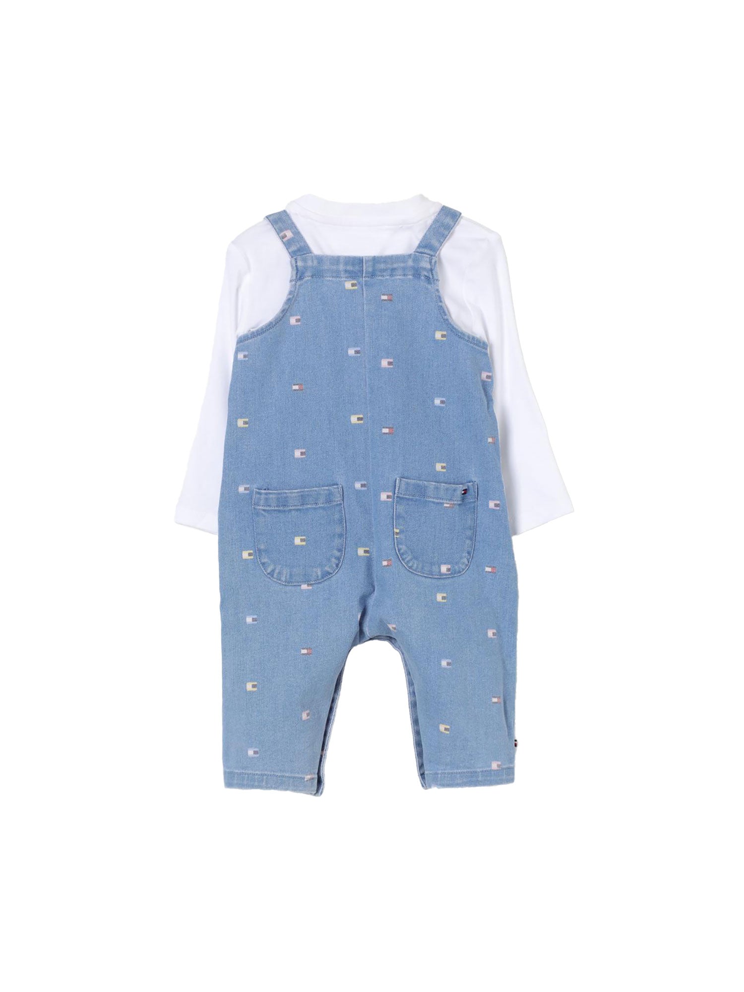 Completo neonato t-shirt e salopette logo allover denim chiaro