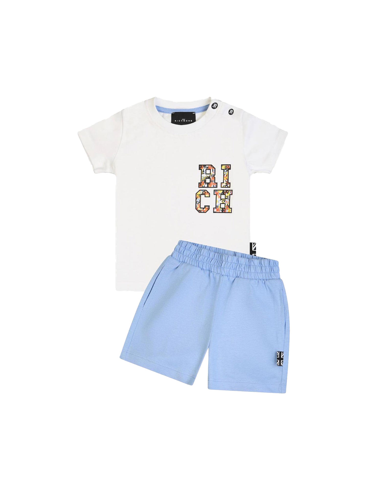 Completo due pezzi perfetto per i più piccoli, questo set firmato Richmond Junior è l’equilibrio ideale tra comfort e stile. La t-shirt impreziosita dalla scritta "RICH" con stampa cartoon colorata, si abbina perfettamente agli shorts dal taglio sportivo. Un look fresco, vivace e pratico, pensato per le giornate all’aria aperta.