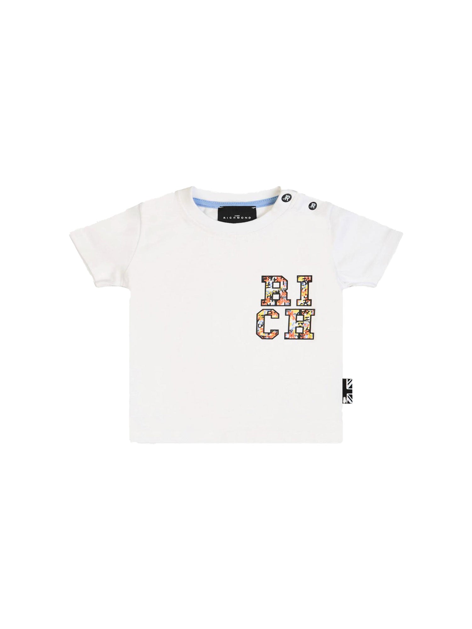 - T-shirt bianca con stampa “RICH” multicolor effetto cartoon