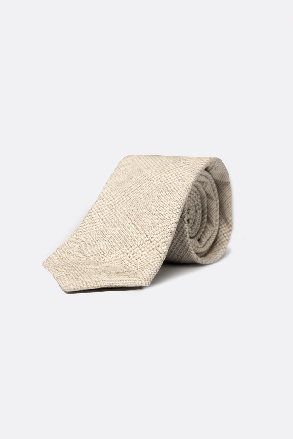 Cravatta in cotone con motivo principe di Galles tortora