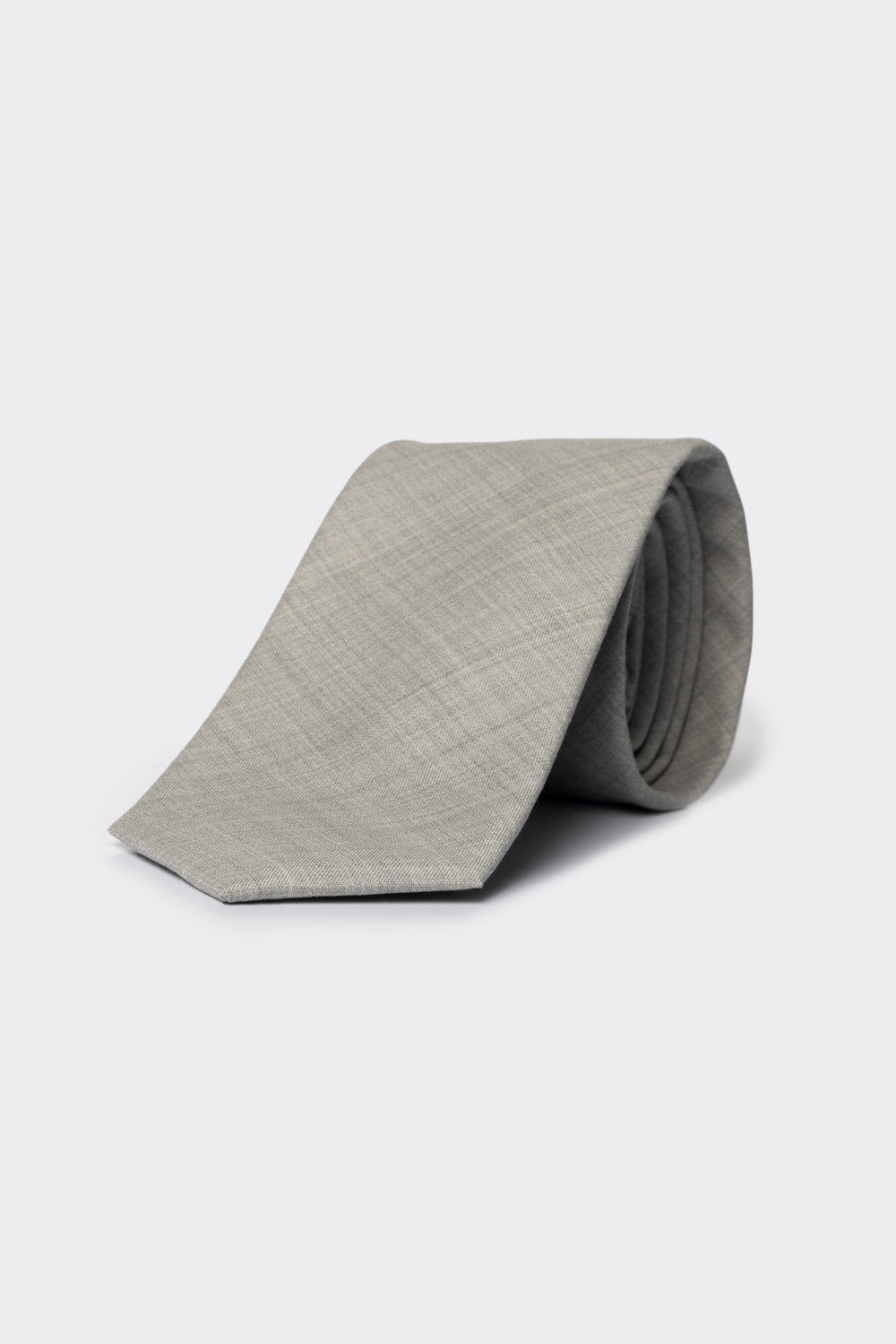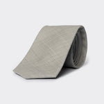 Questa cravatta in lana si distingue per la texture leggermente irregolare, che crea un effetto visivo melangiato e delicato.