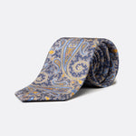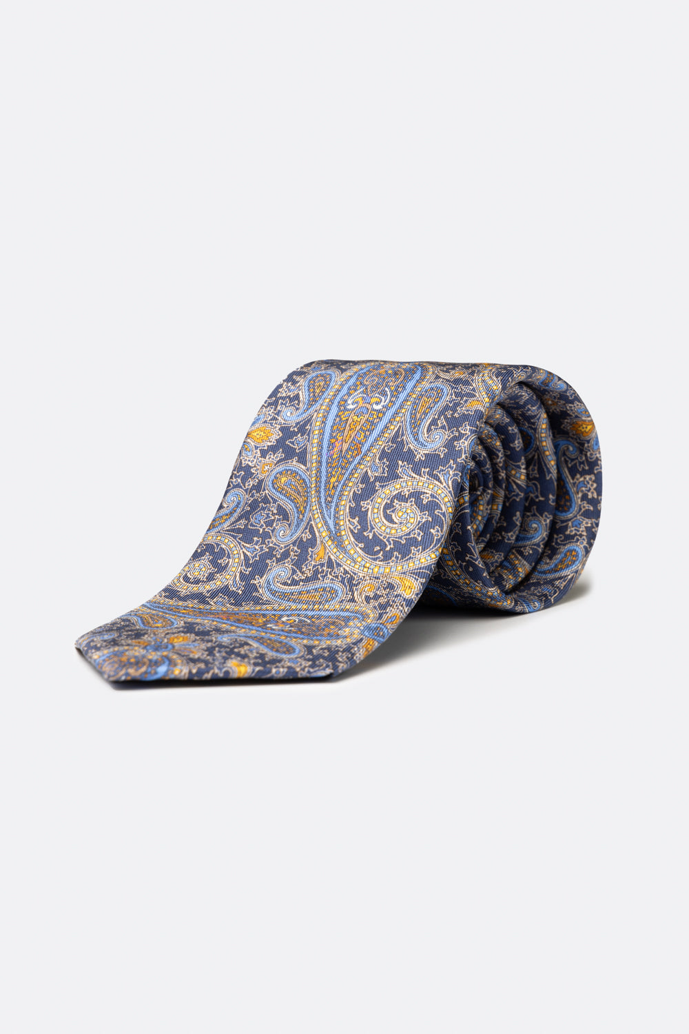 Realizzata in pura seta, questa cravatta si distingue per il motivo cachemire, reinterpretato con equilibrio e raffinatezza. La texture fluida e luminosa esalta il disegno ornamentale, donando profondità e carattere all’insieme.