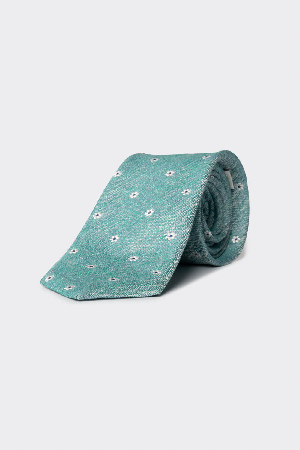 Cravatta realizzata in un pregiato blend di seta e lino, con motivo floreale, discreto e raffinato, aggiunge un tocco di personalità senza rinunciare all’eleganza. La composizione in fibre nobili dona freschezza e luminosità al tessuto, rendendola ideale per la stagione estiva e per completare look sartoriali o più informali.