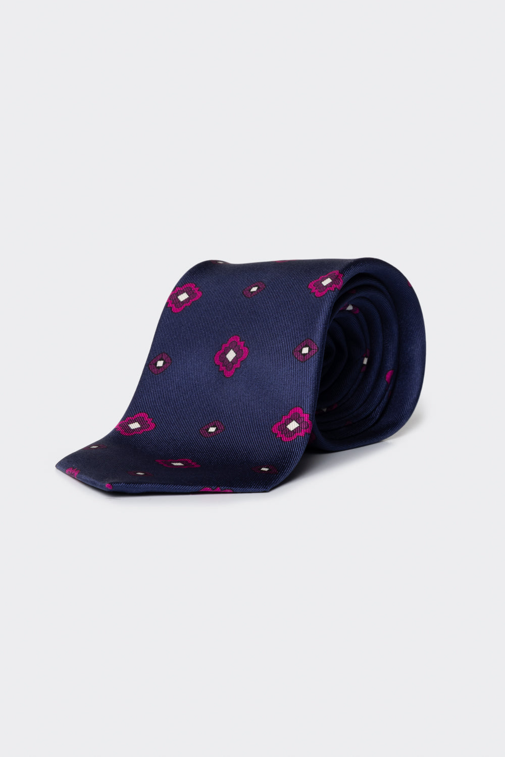 Cravatta realizzata in pura seta, impreziosita da una fantasia geometrica dal disegno contemporaneo.