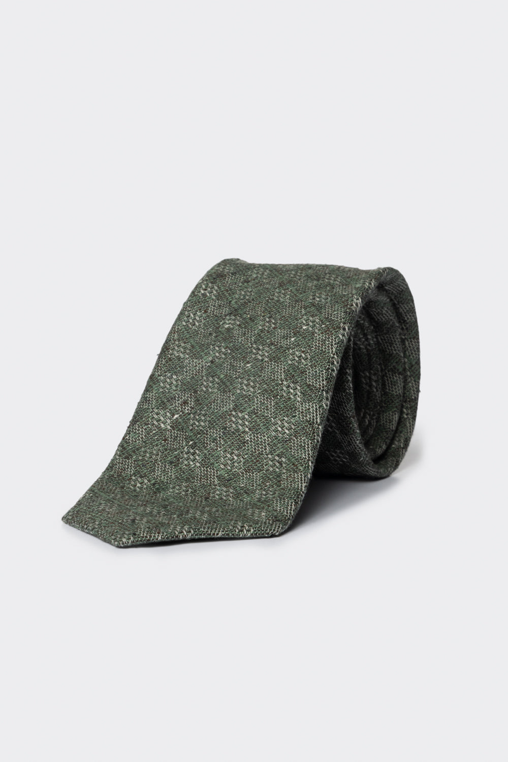 Cravatta in seta e cotone con motivo a rombi tono su tono verde
