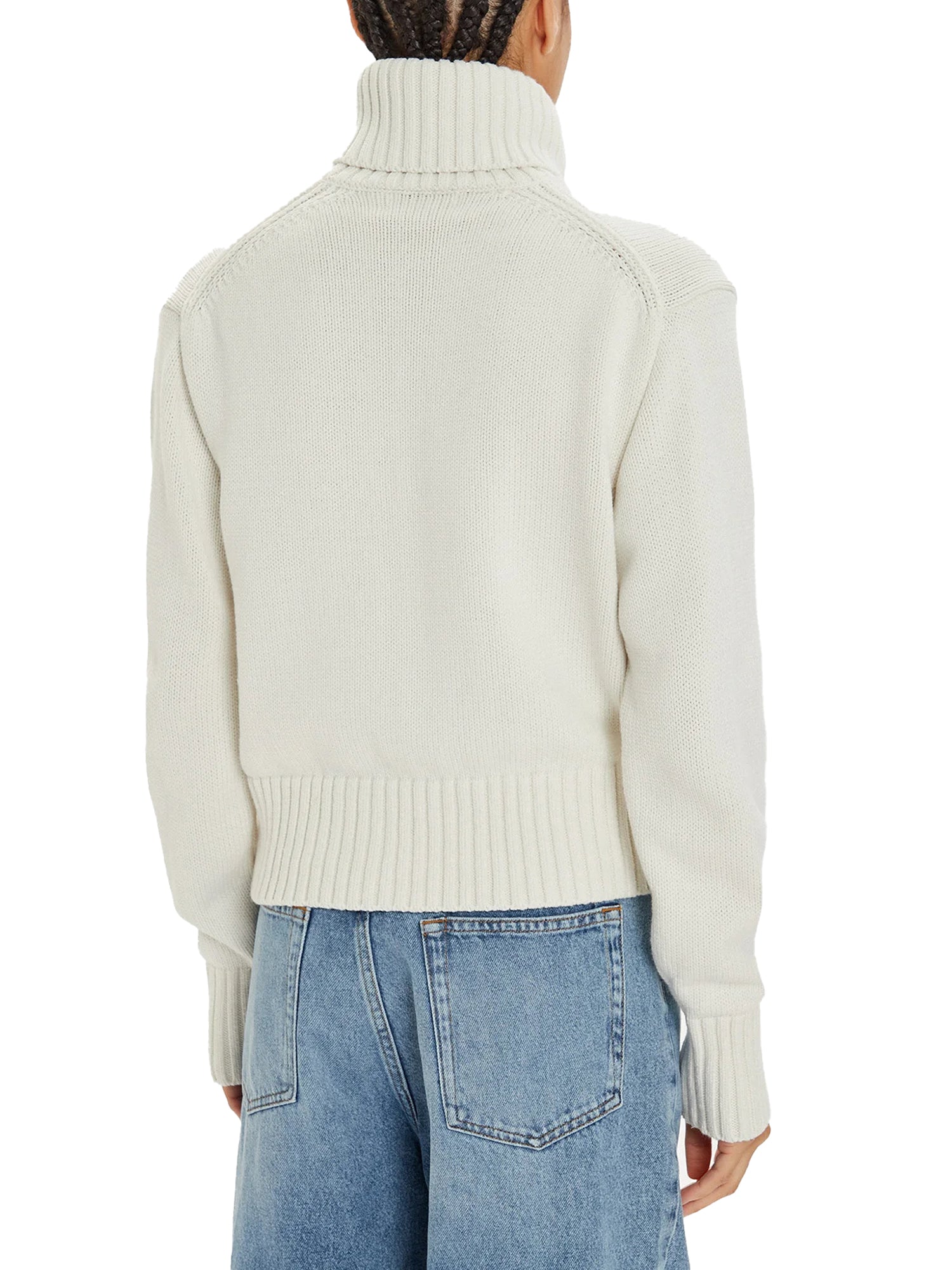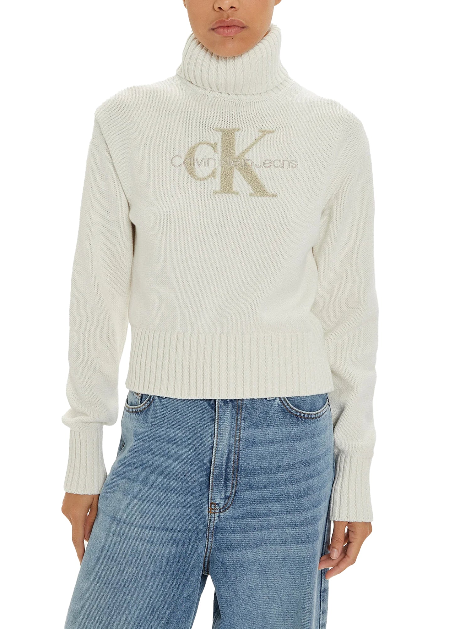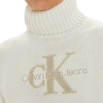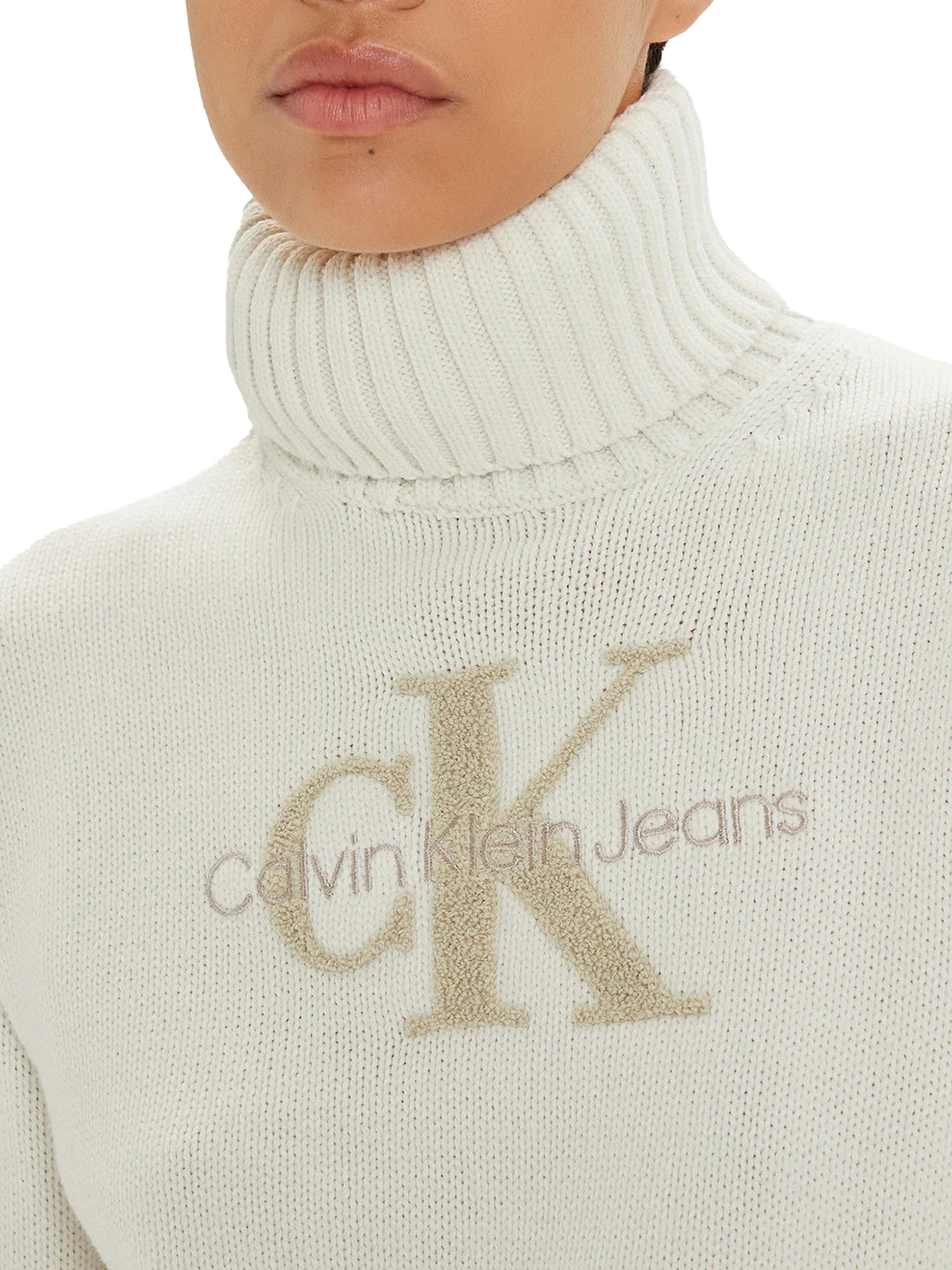 Dolcevita Calvin Klein Jeans in maglia chenille, con logo in evidenza, per uno stile casual e di tendenza. Modello con polsini e orlo a costine, ideale per un look rilassato, ma sofisticato.
