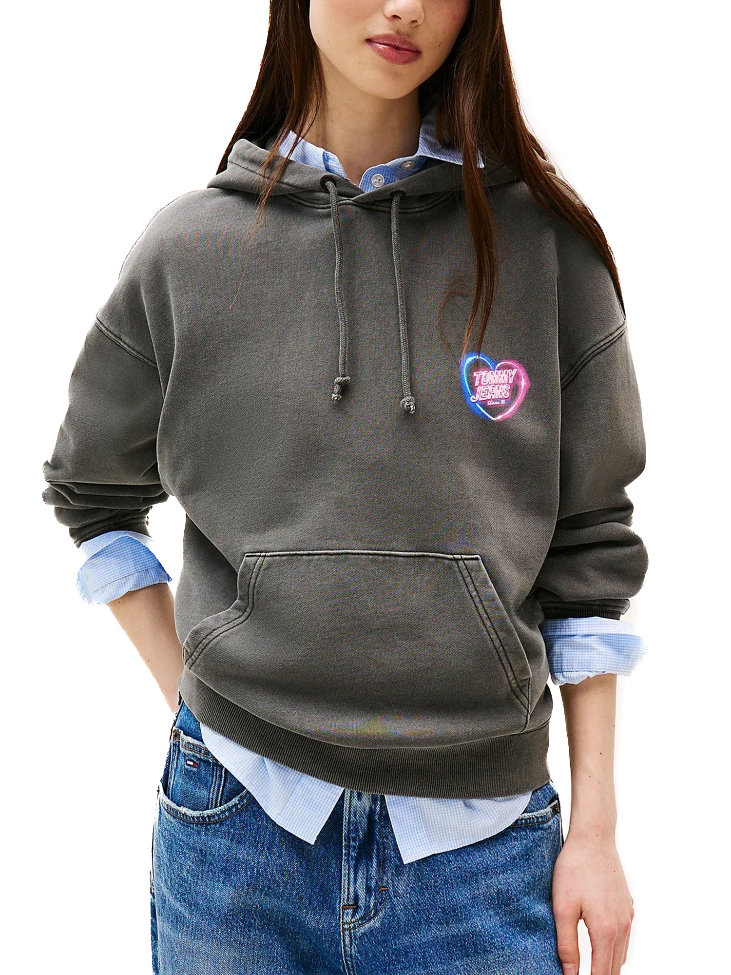 - Stampa cuore effetto neon con logo Tommy Jeans sul petto e sulla schiena
