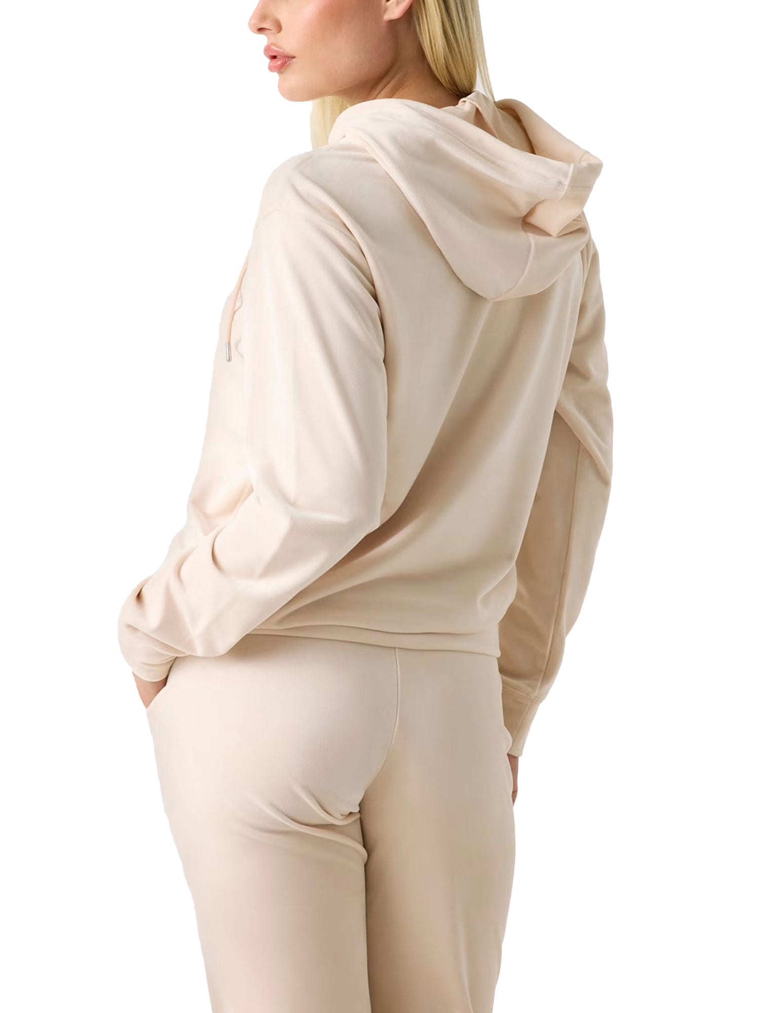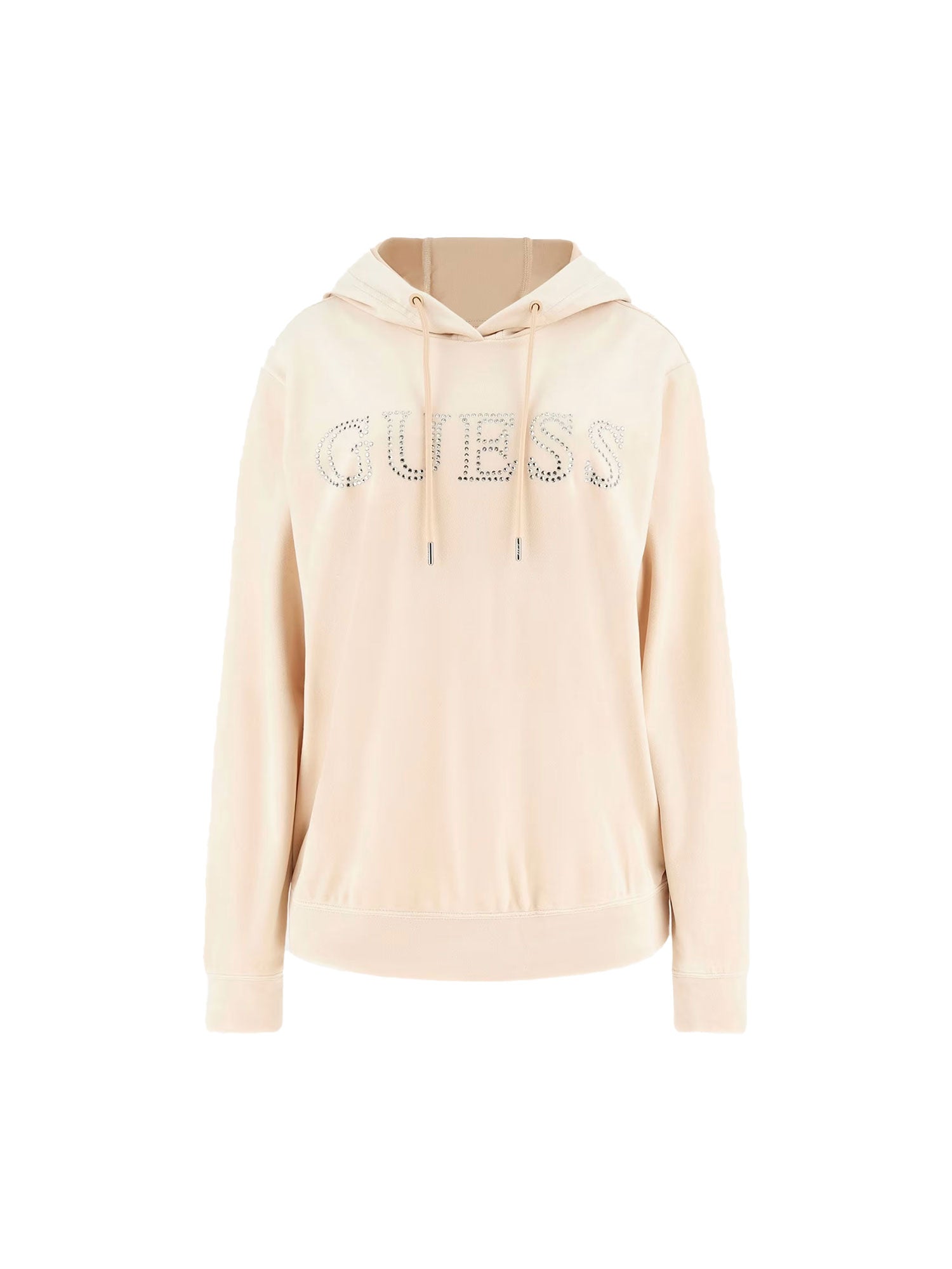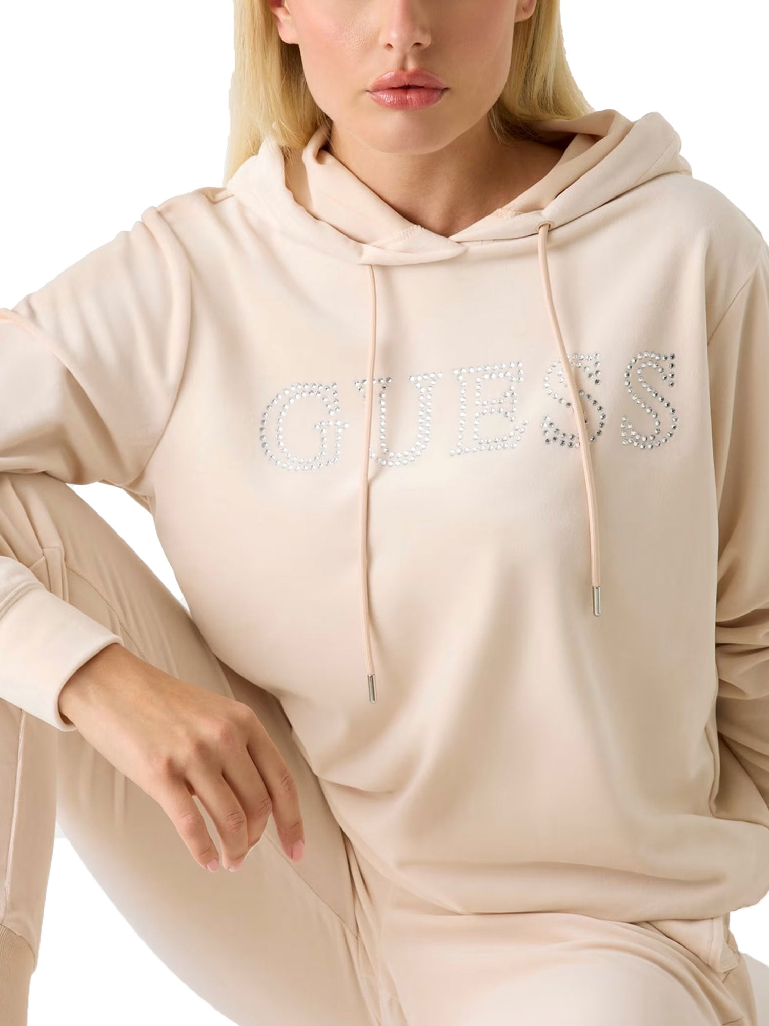 Felpa con cappuccio Guess donna in velluto con logo strass beige