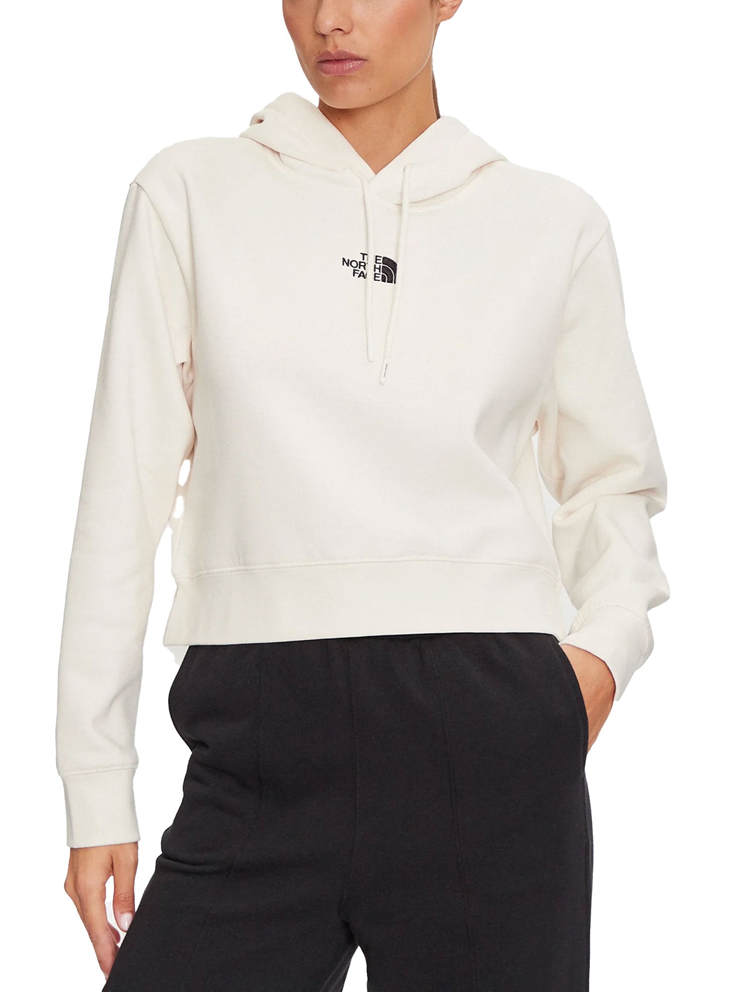 Felpa The North Face donna con cappuccio essential taglio crop panna