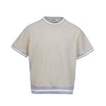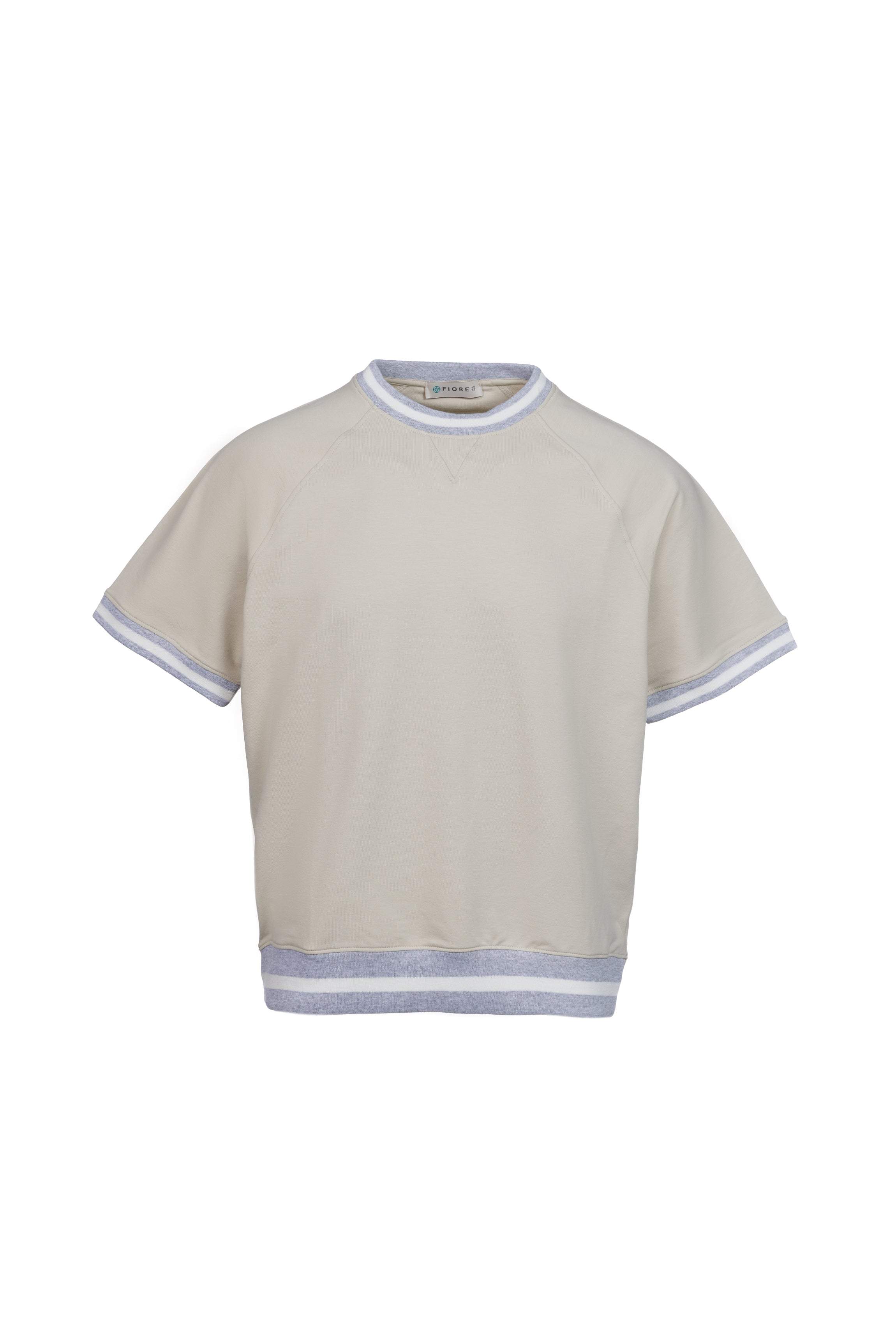 T-shirt felpa in cotone con elastico a contrasto sabbia