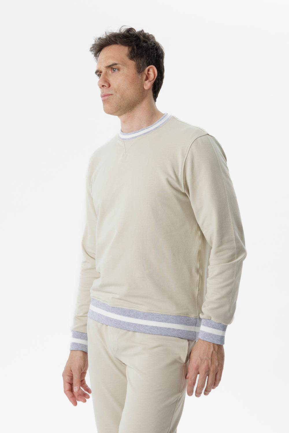 Felpa girocollo in cotone sabbia con dettagli bicolore