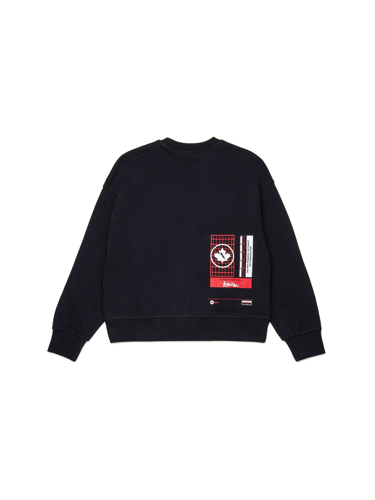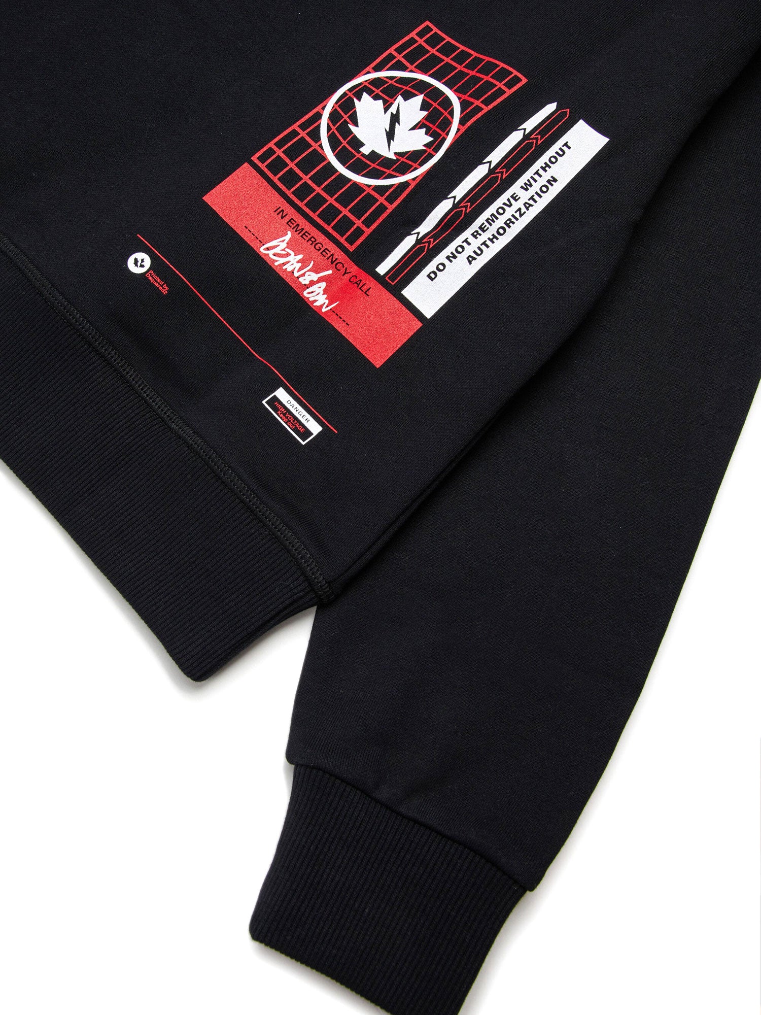 - Grafica rossa e bianca sul retro con foglia d’acero e scritte tematiche