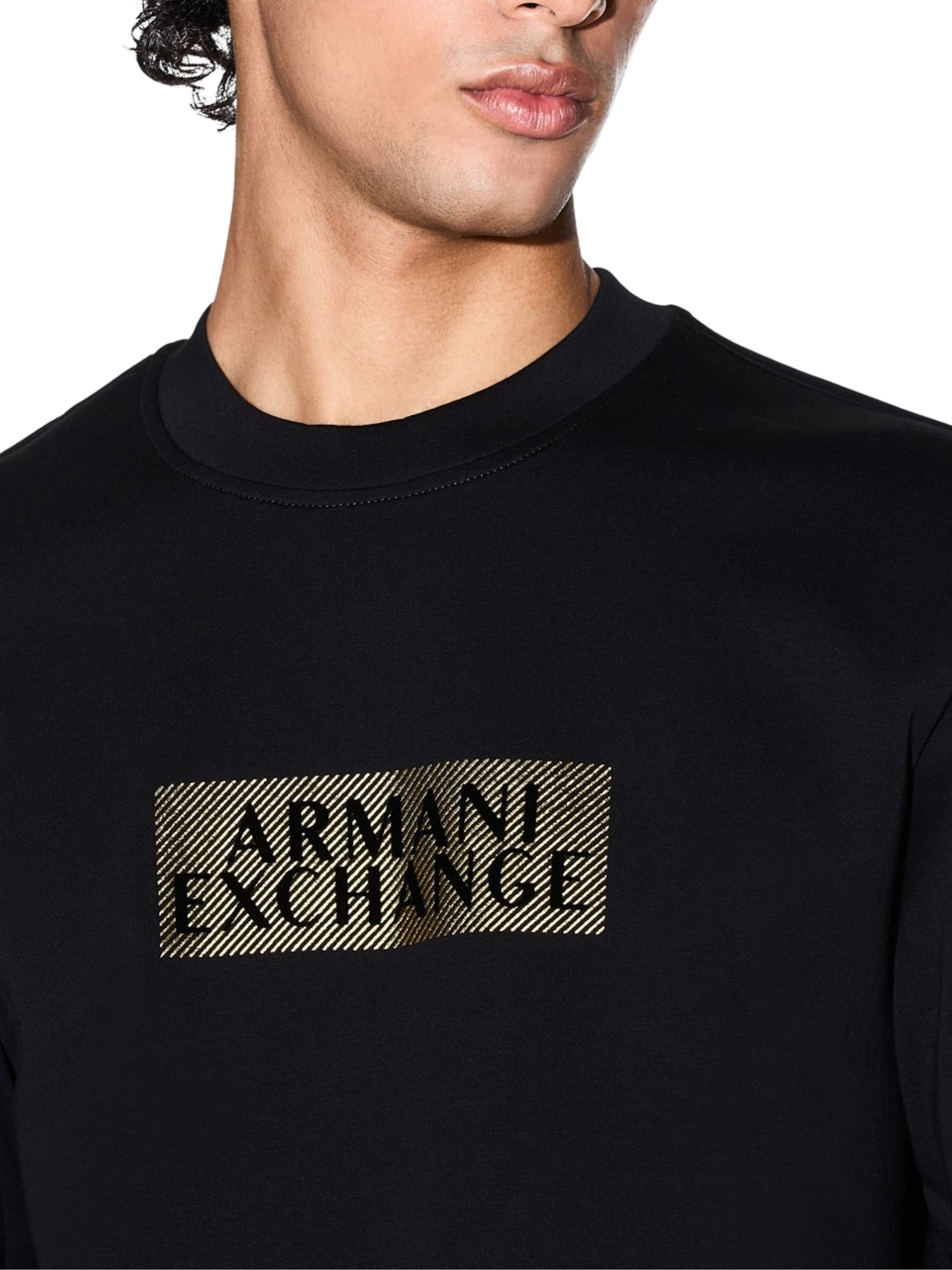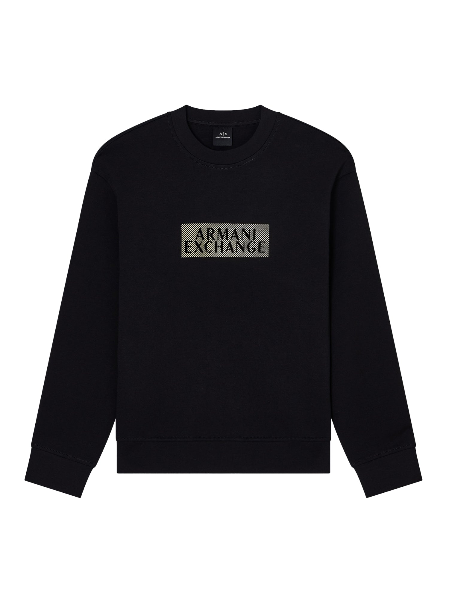 Felpa a girocollo senza cappuccio Armani Exchange uomo ricamo al petto nero diagonal