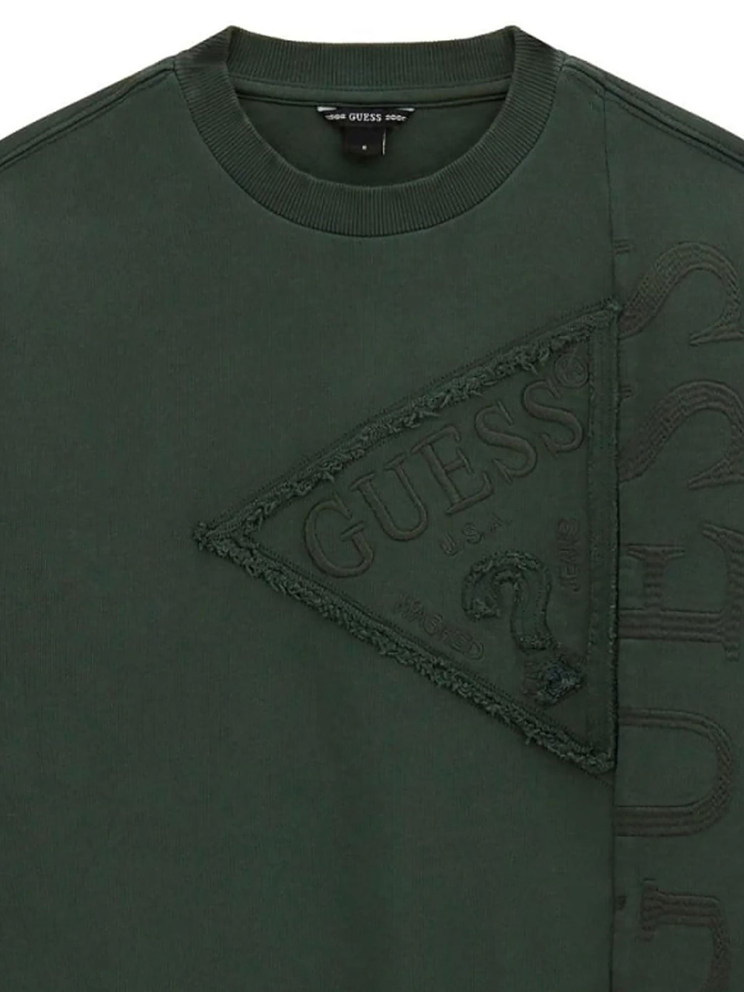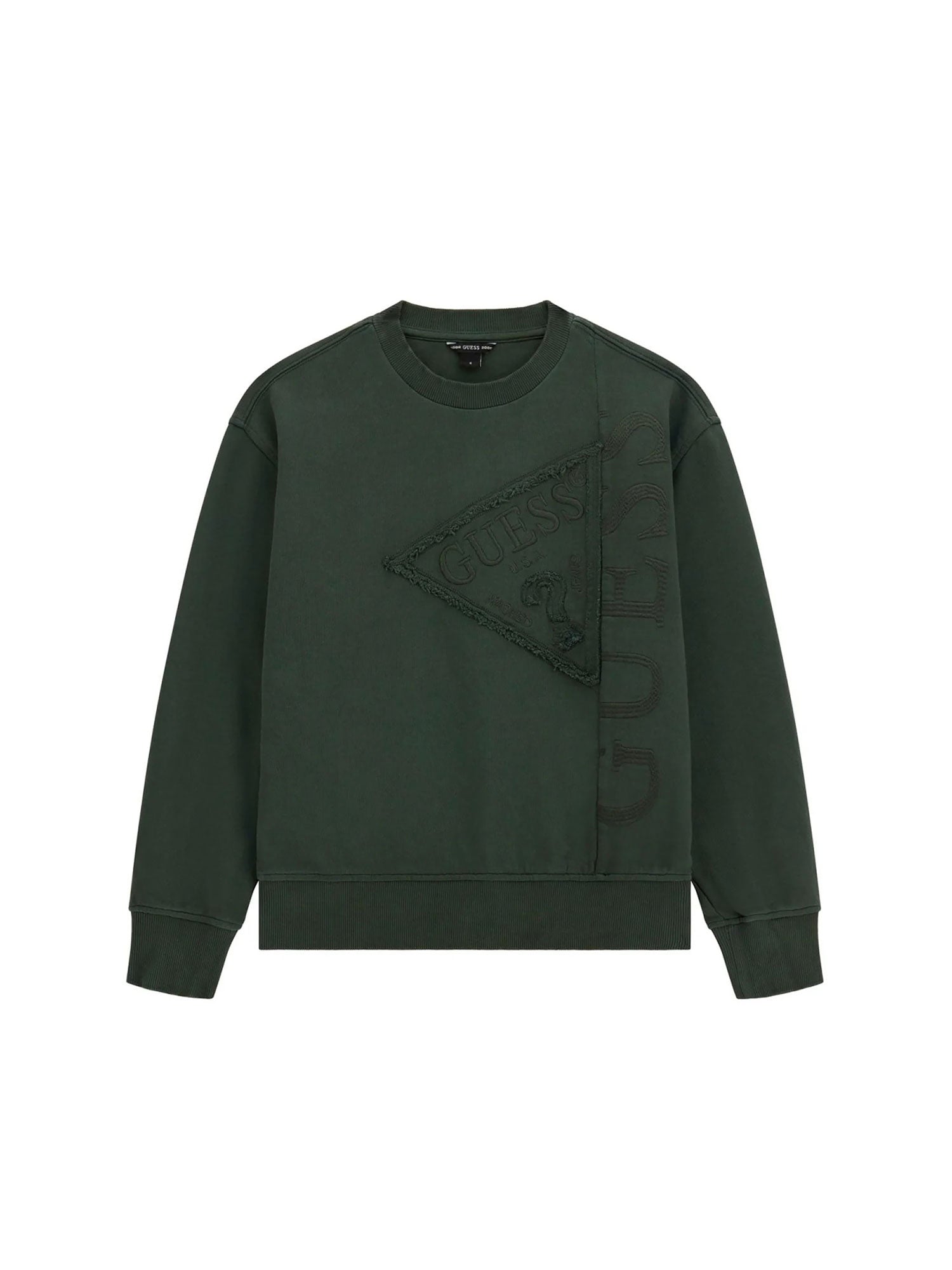 Felpa girocollo Guess ragazzo logo ricamo verde