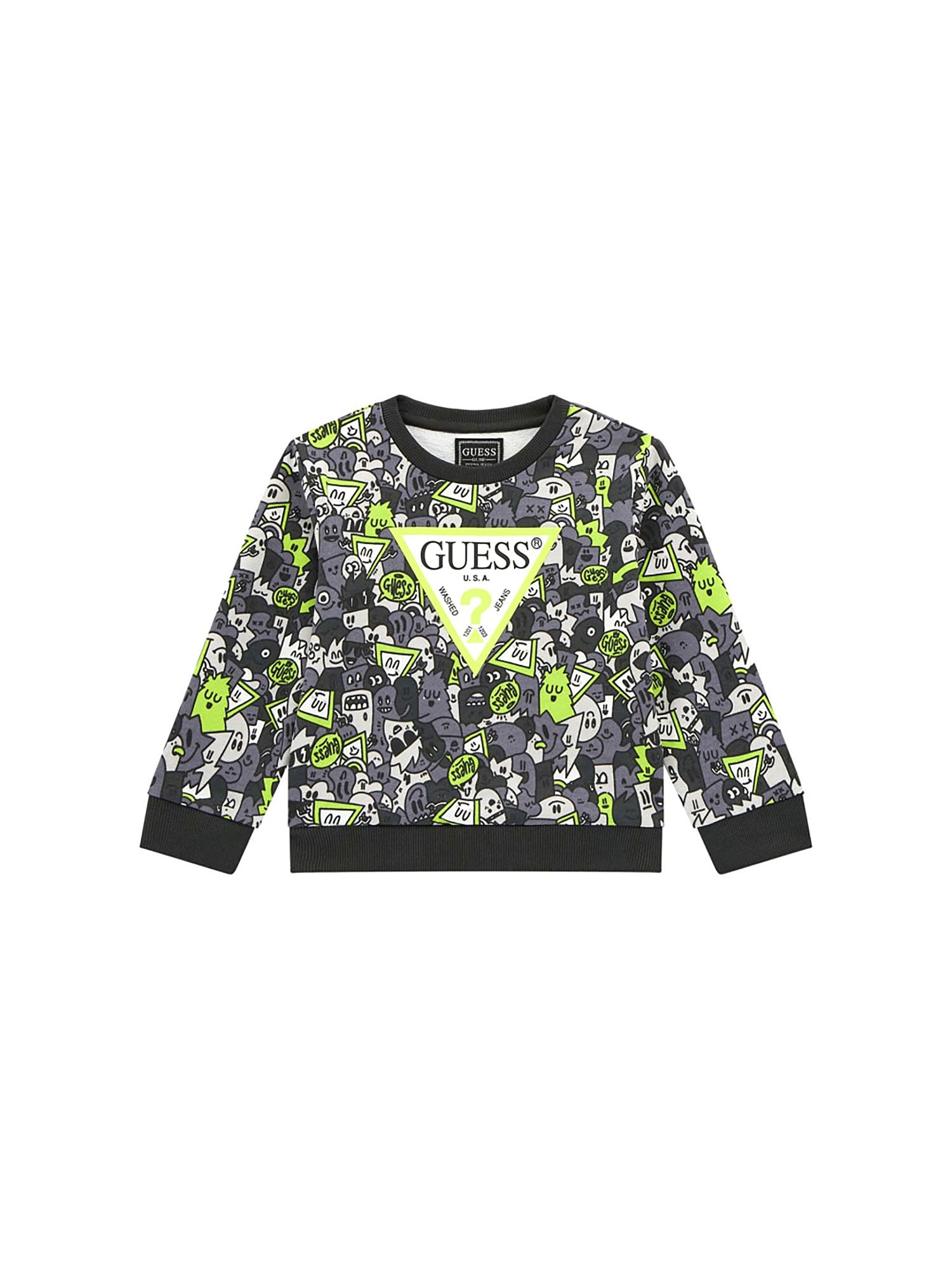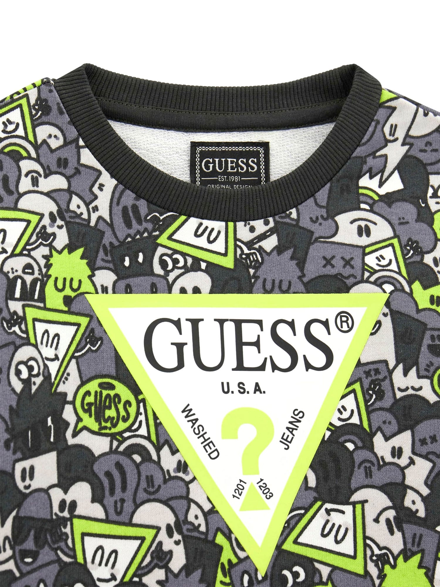 Felpa Guess bambino girocollo in cotone, dal look vivace e contemporaneo. La stampa all over in stile cartoon con personaggi e loghi colorati rende il capo originale e divertente, perfetto per esprimere personalità e stile anche nei look quotidiani.