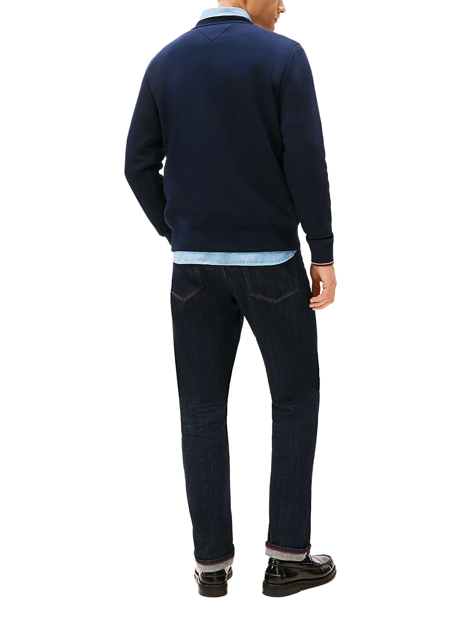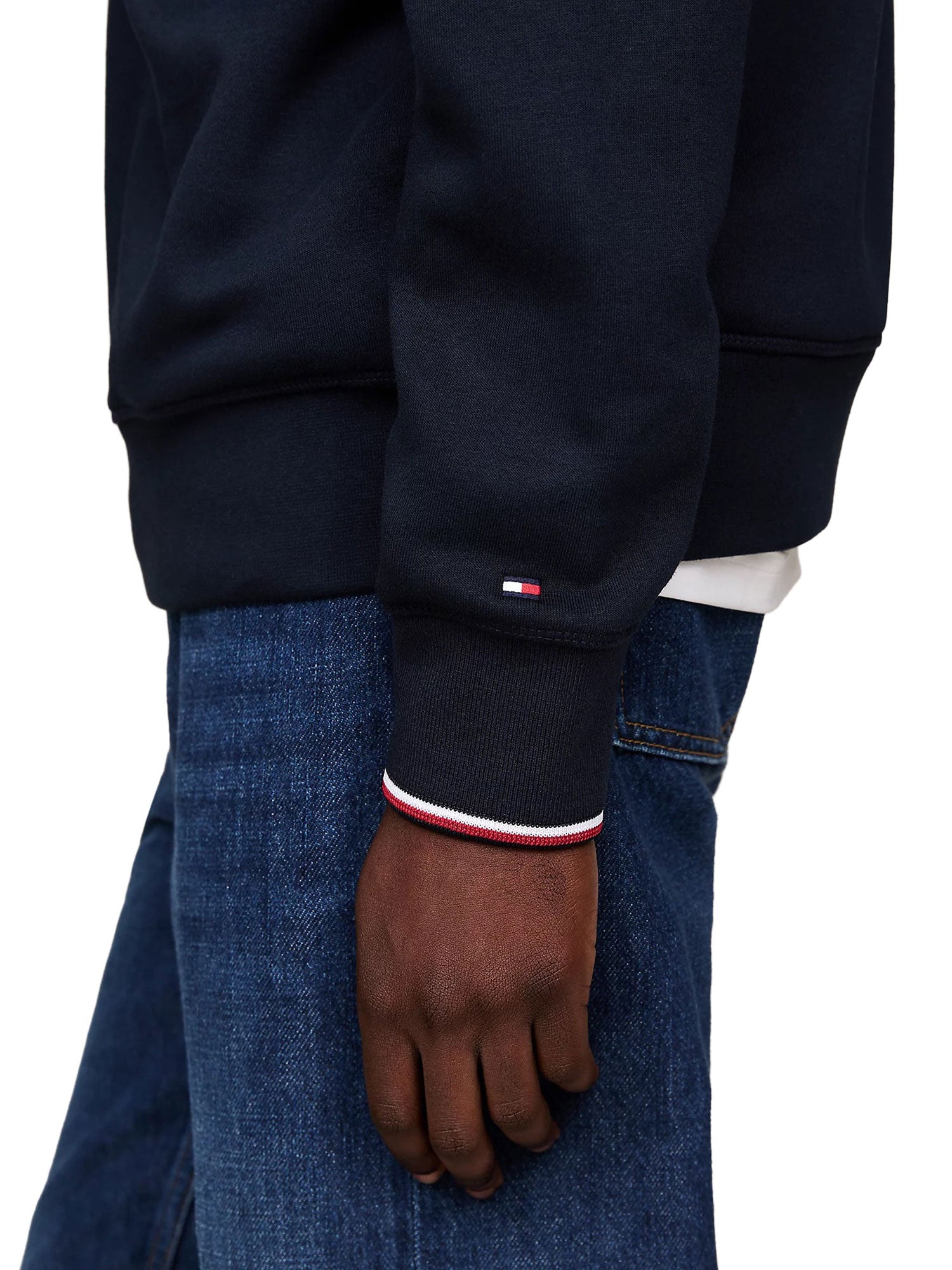 Felpa girocollo Tommy Hilfiger con logo script frontale e dettaglio su polsino blu