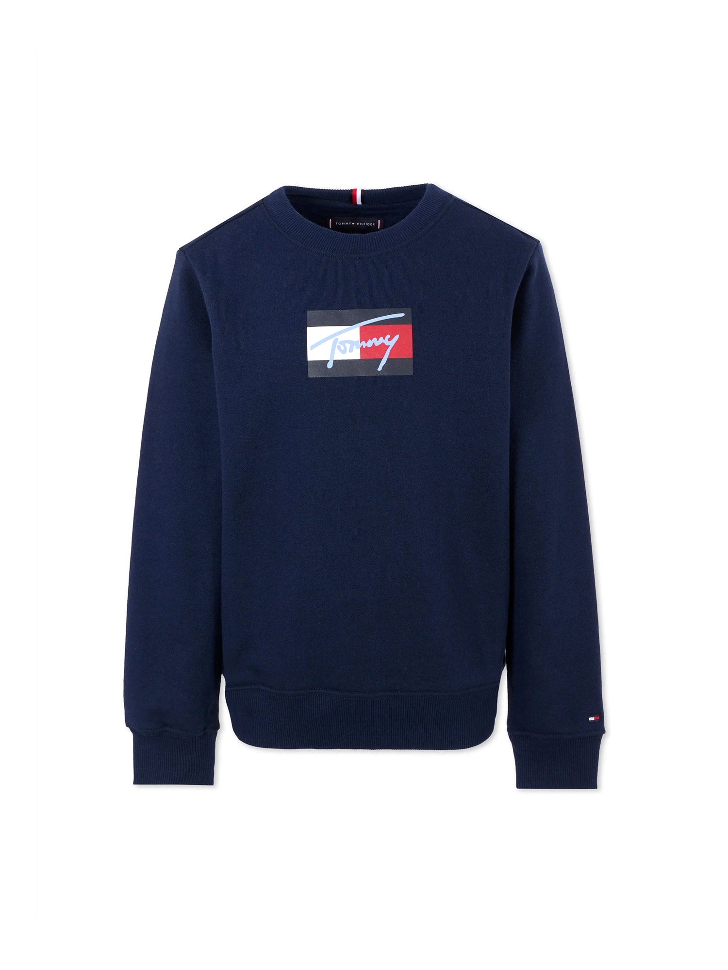 Felpa girocollo Tommy Hilfiger bimbo logo script e bandiera blu