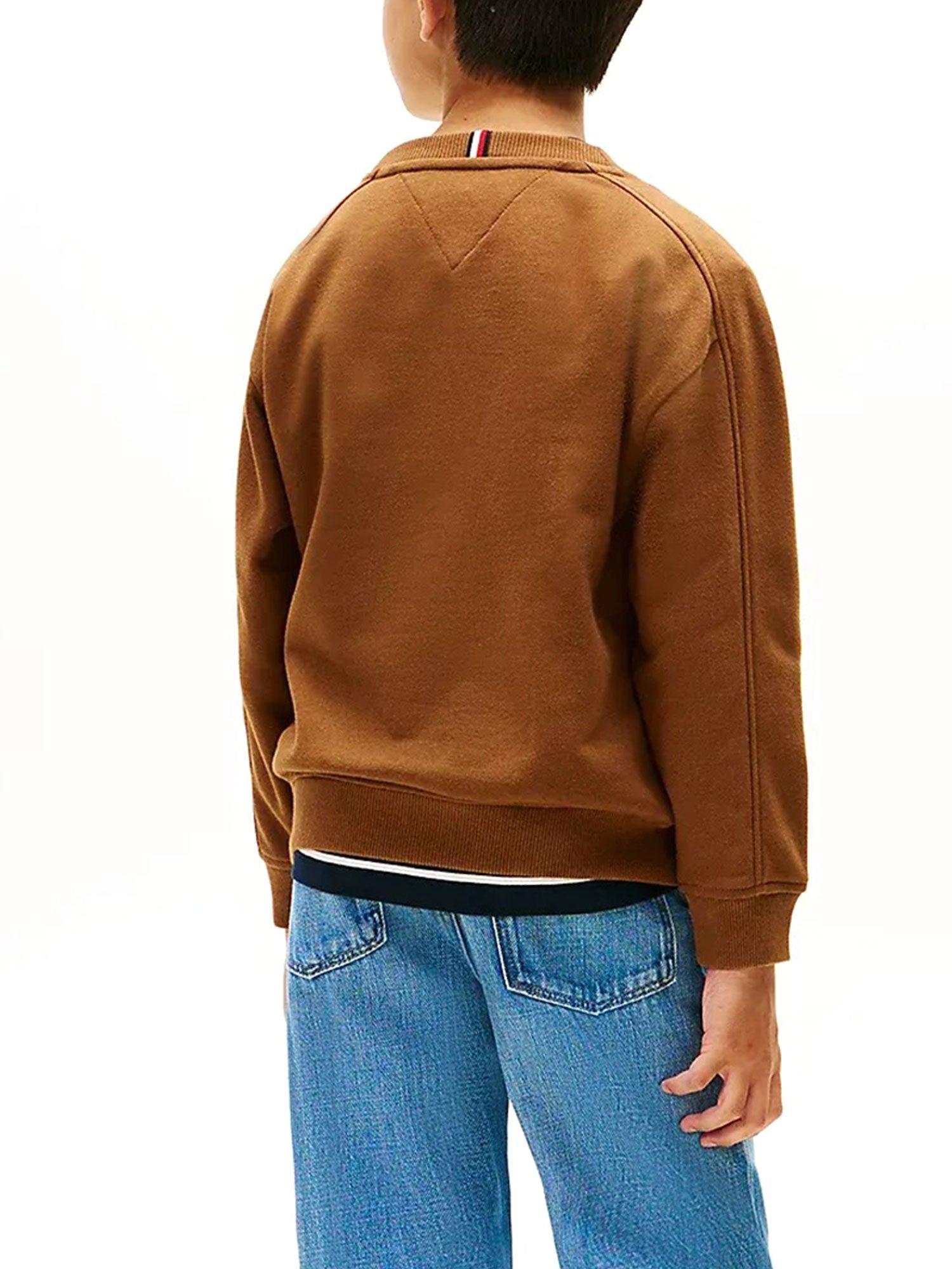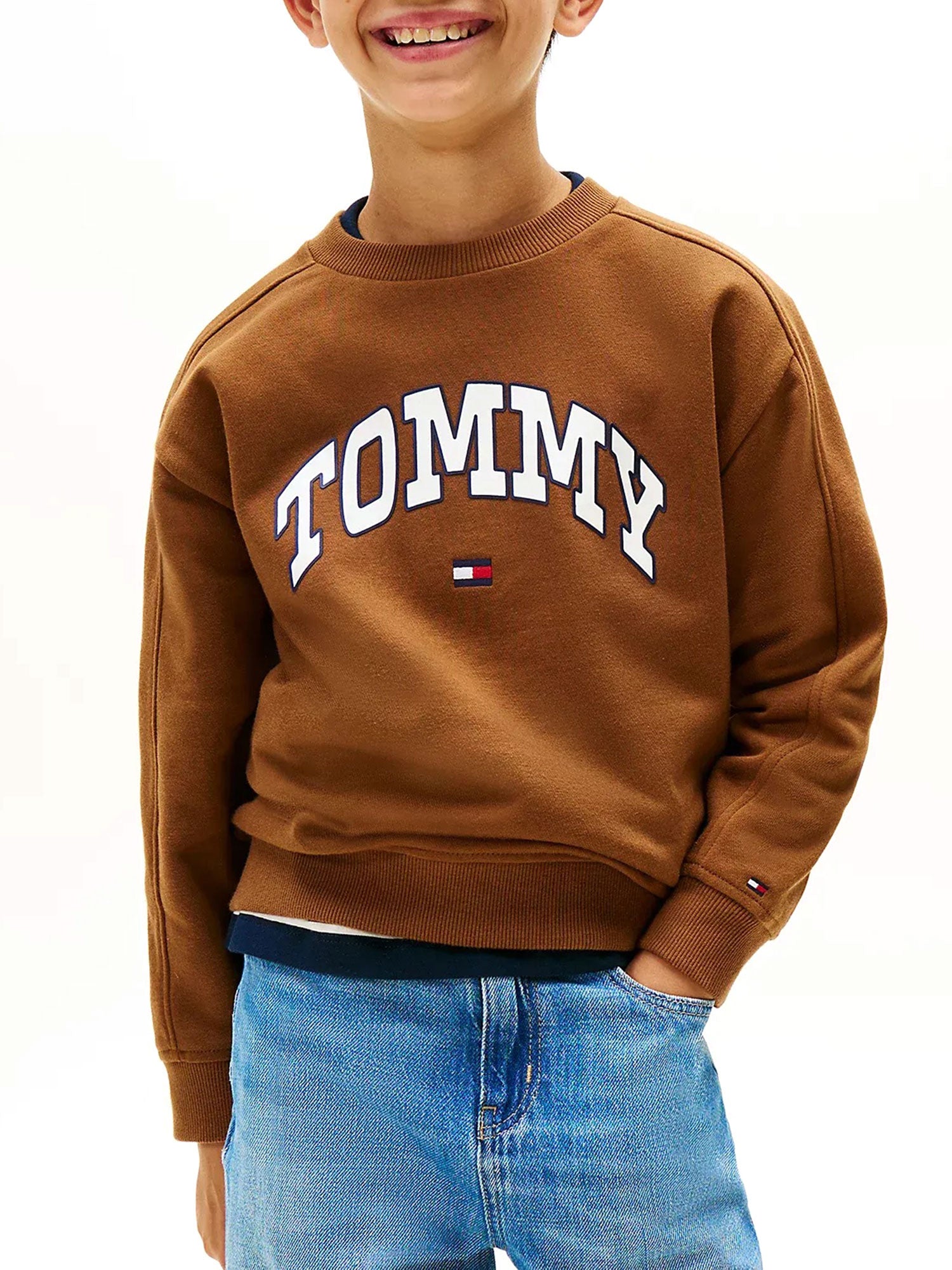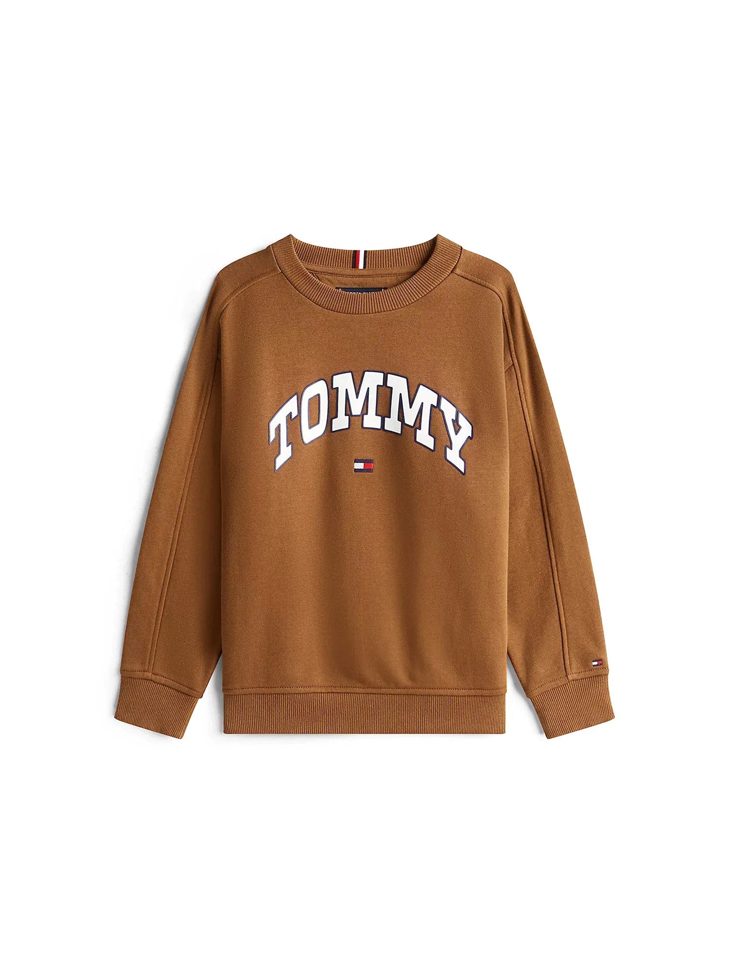 Felpa girocollo Tommy Hilfiger ragazzo varsity raised stampa logo nocciola