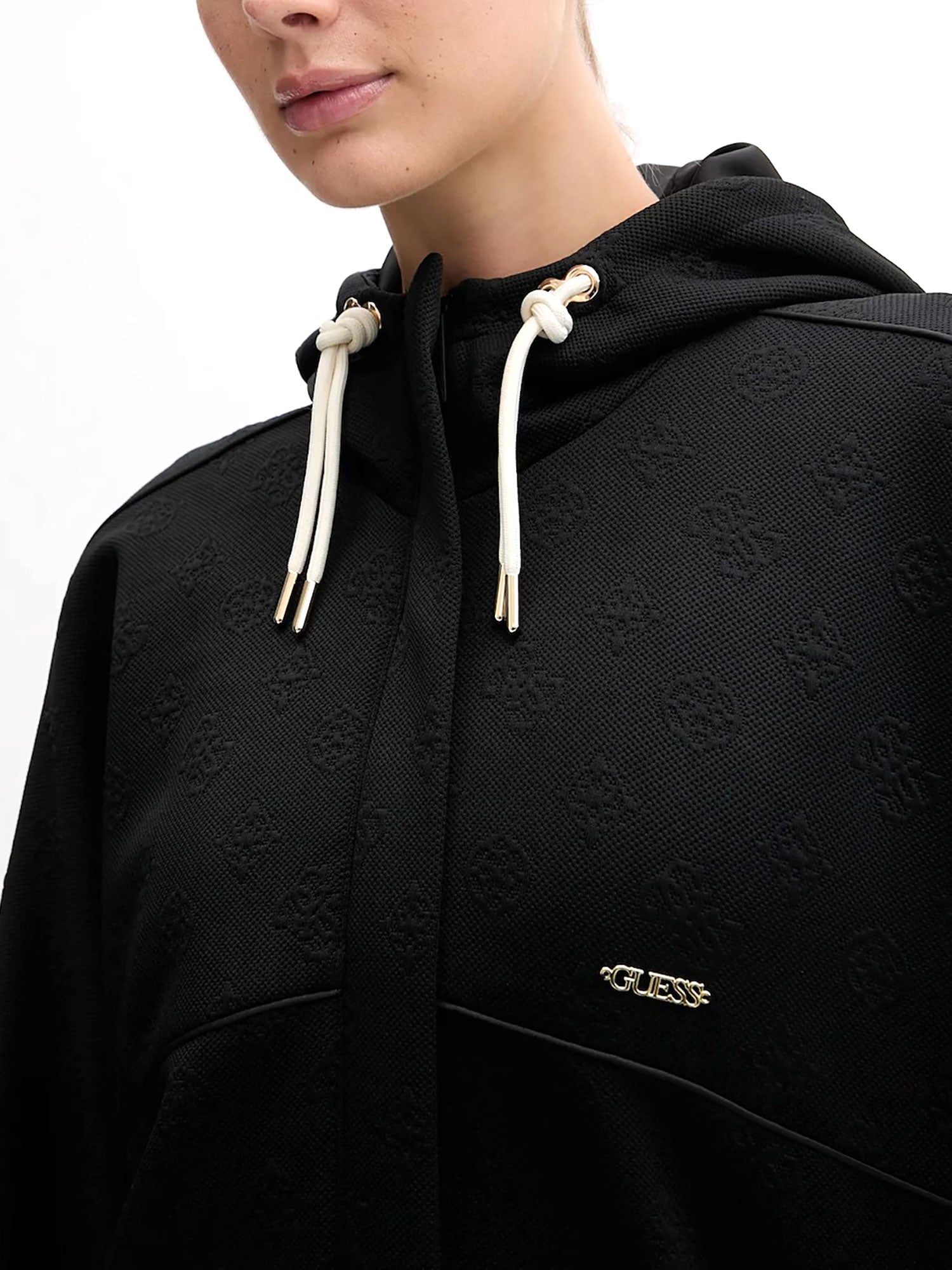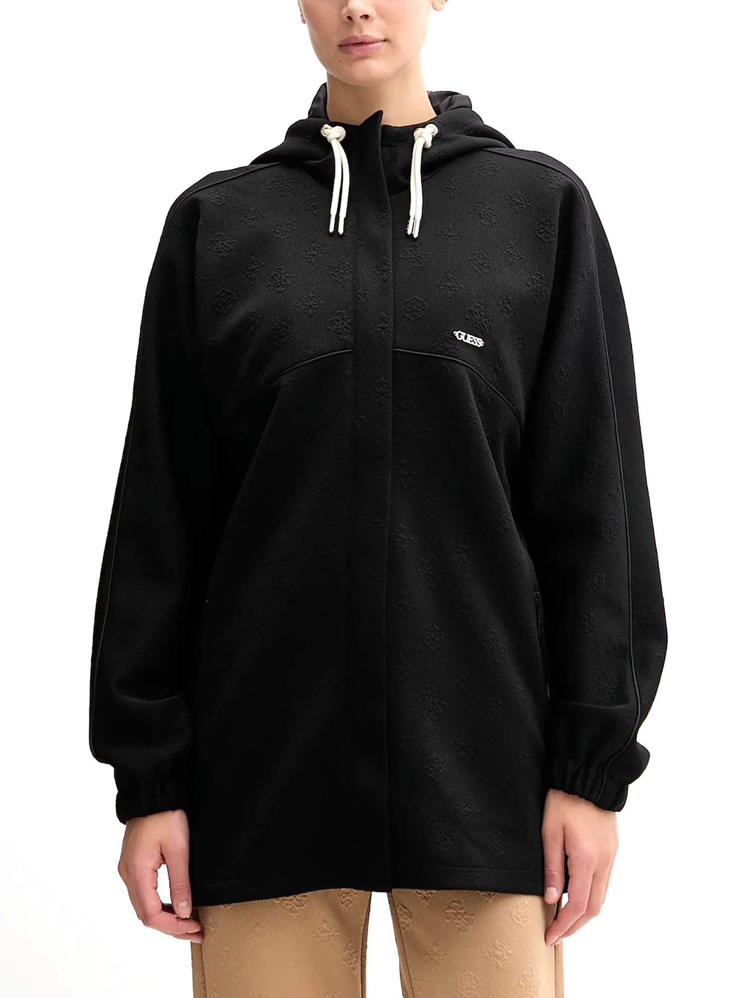 Felpa con zip e cappuccio Guess donna Peony oversize nero