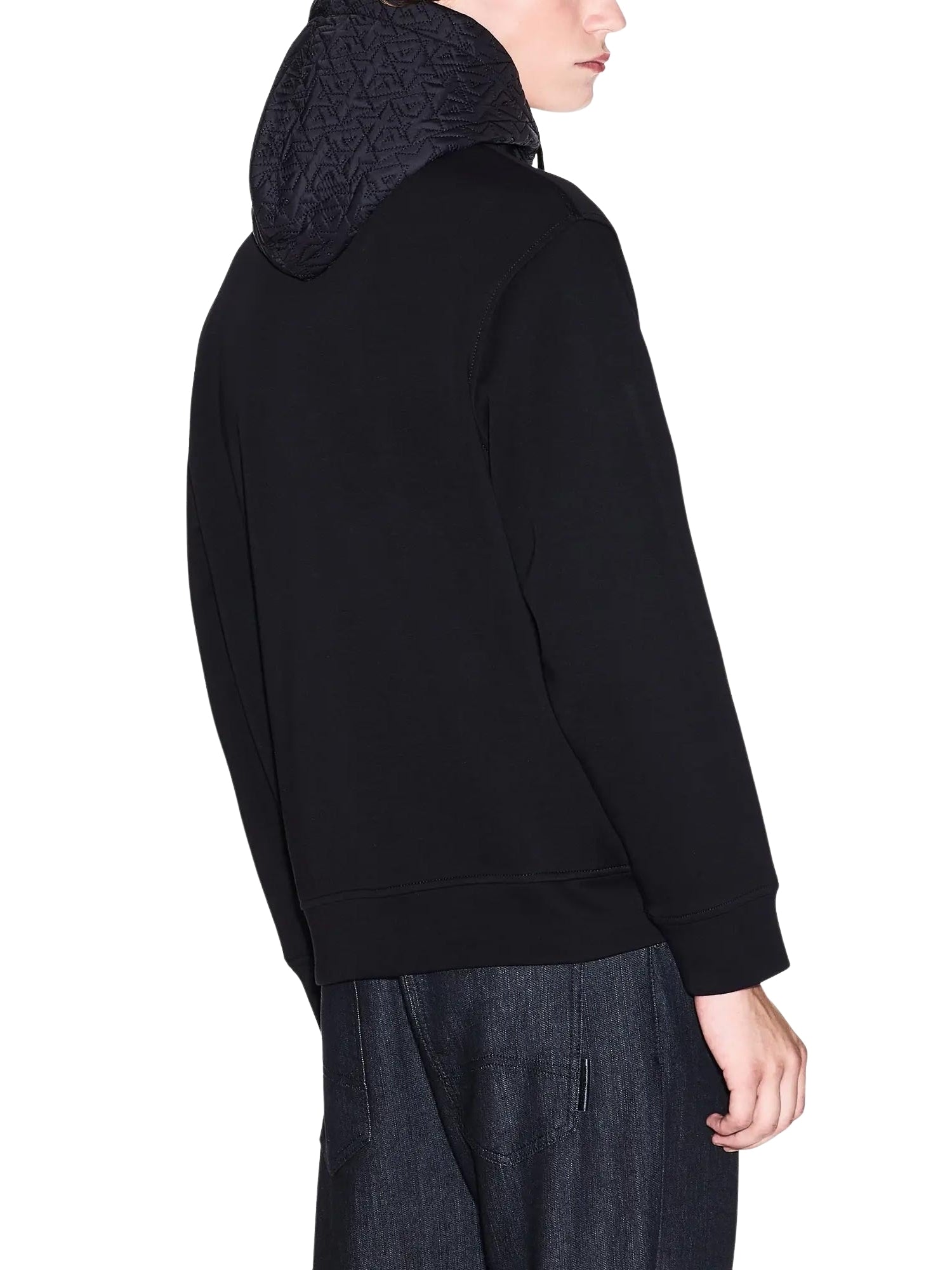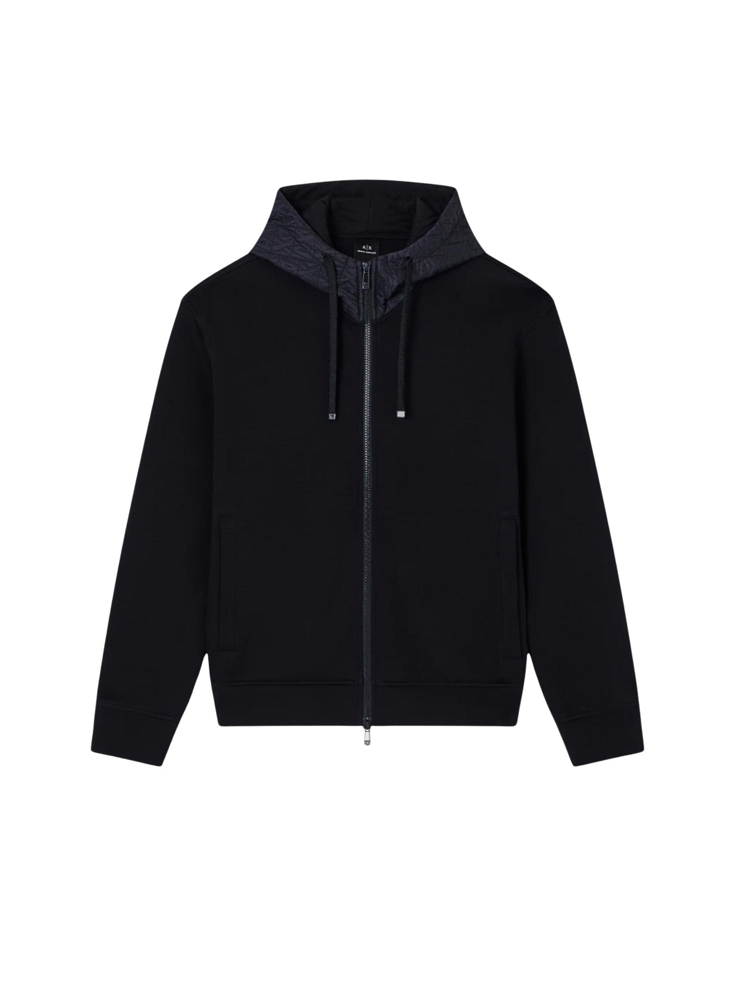 Felpa con un cappuccio Armani Exchange da uomo cappuccio con inserto tecnico allover nero