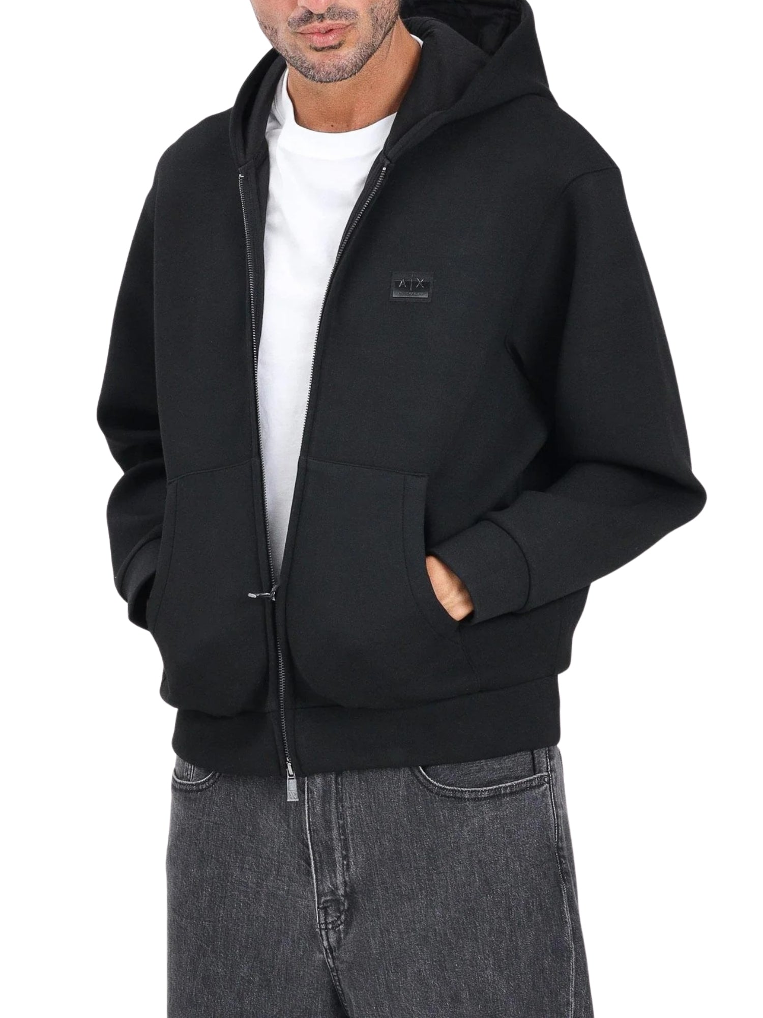 Felpa zip Armani Exchange uomo con cappuccio logoal petto boxlogo nero