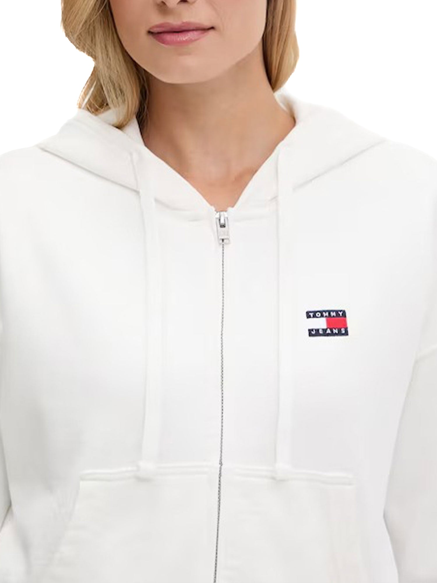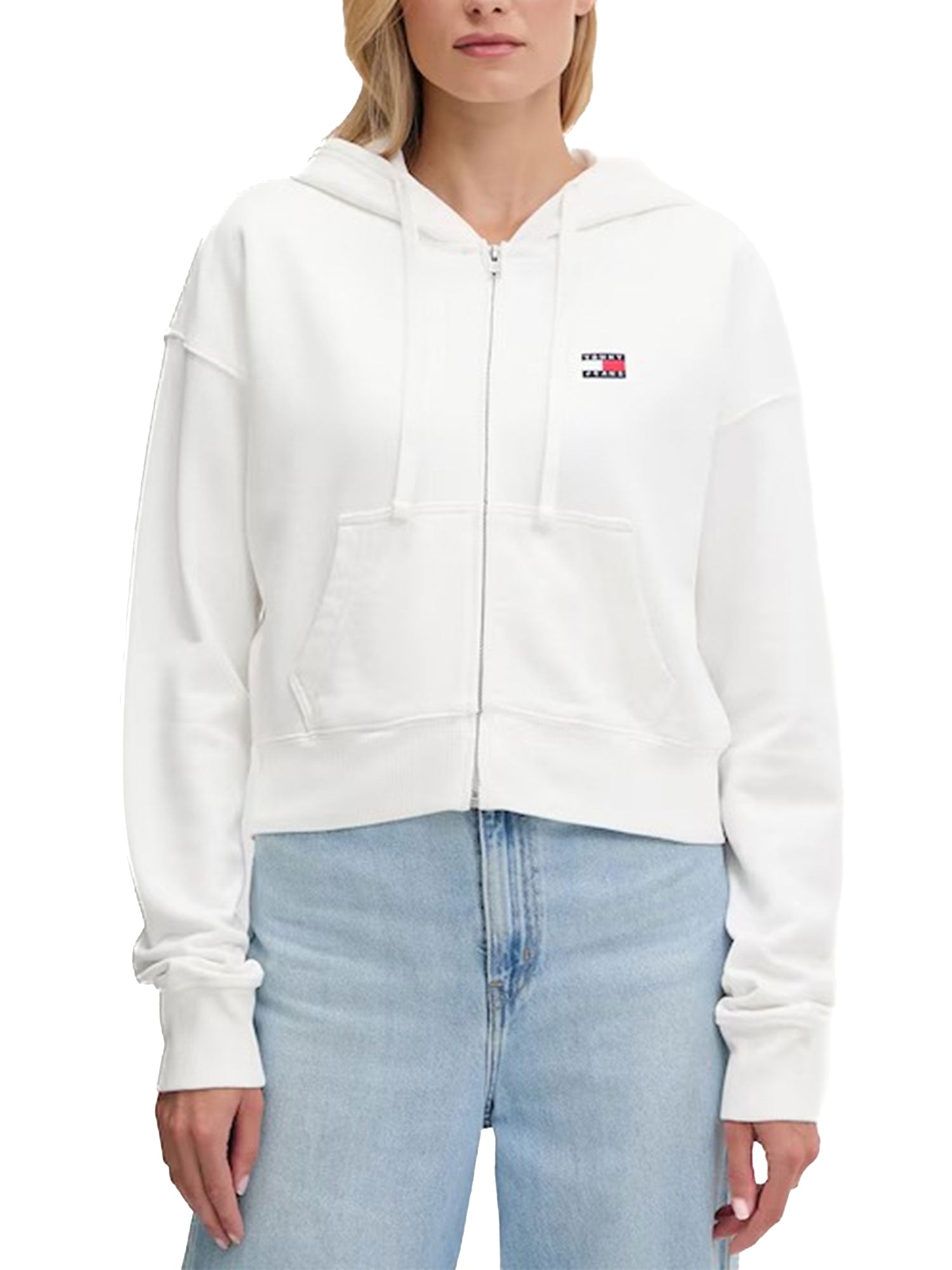 Felpa zip con cappuccio crop ecru