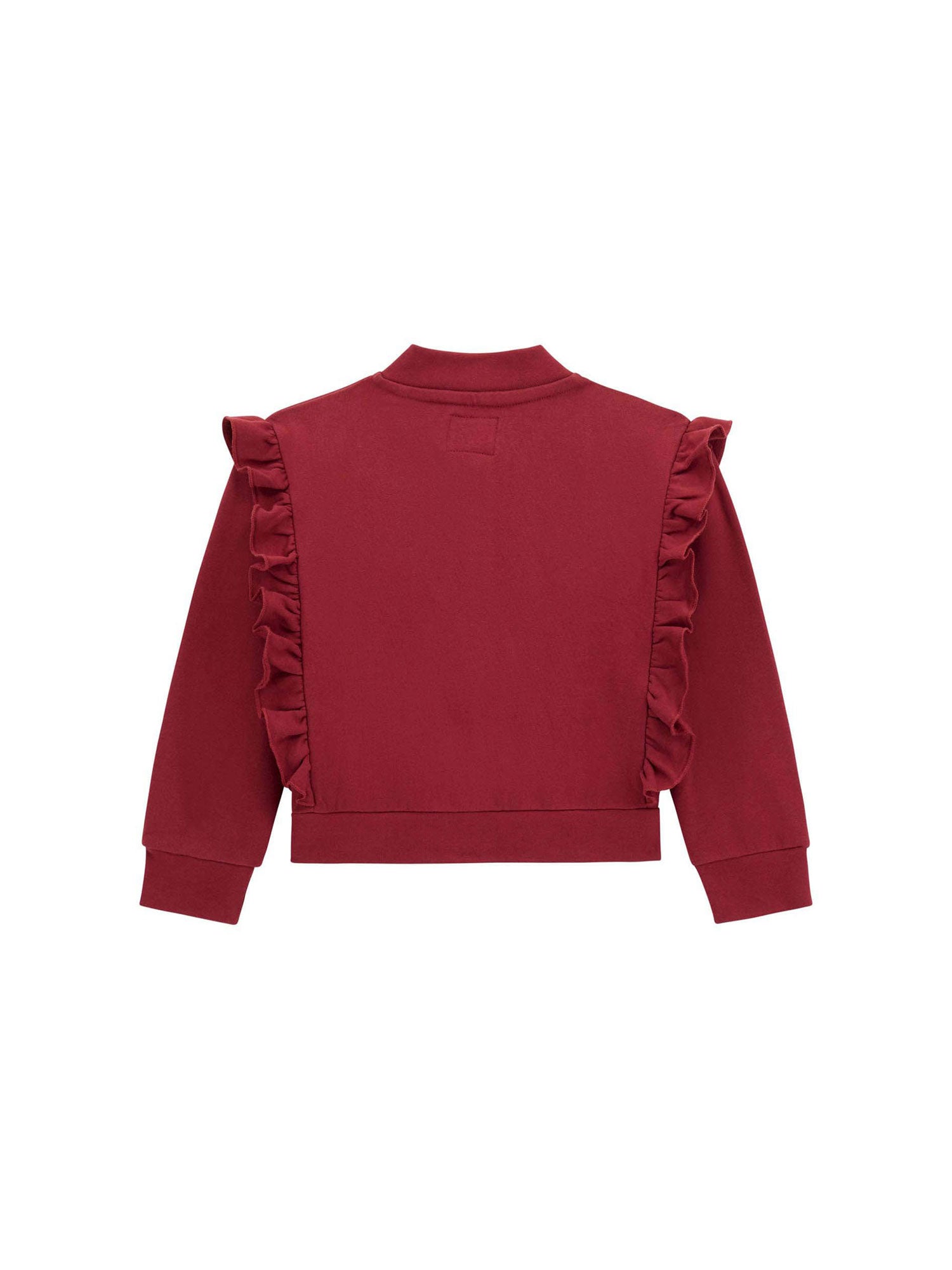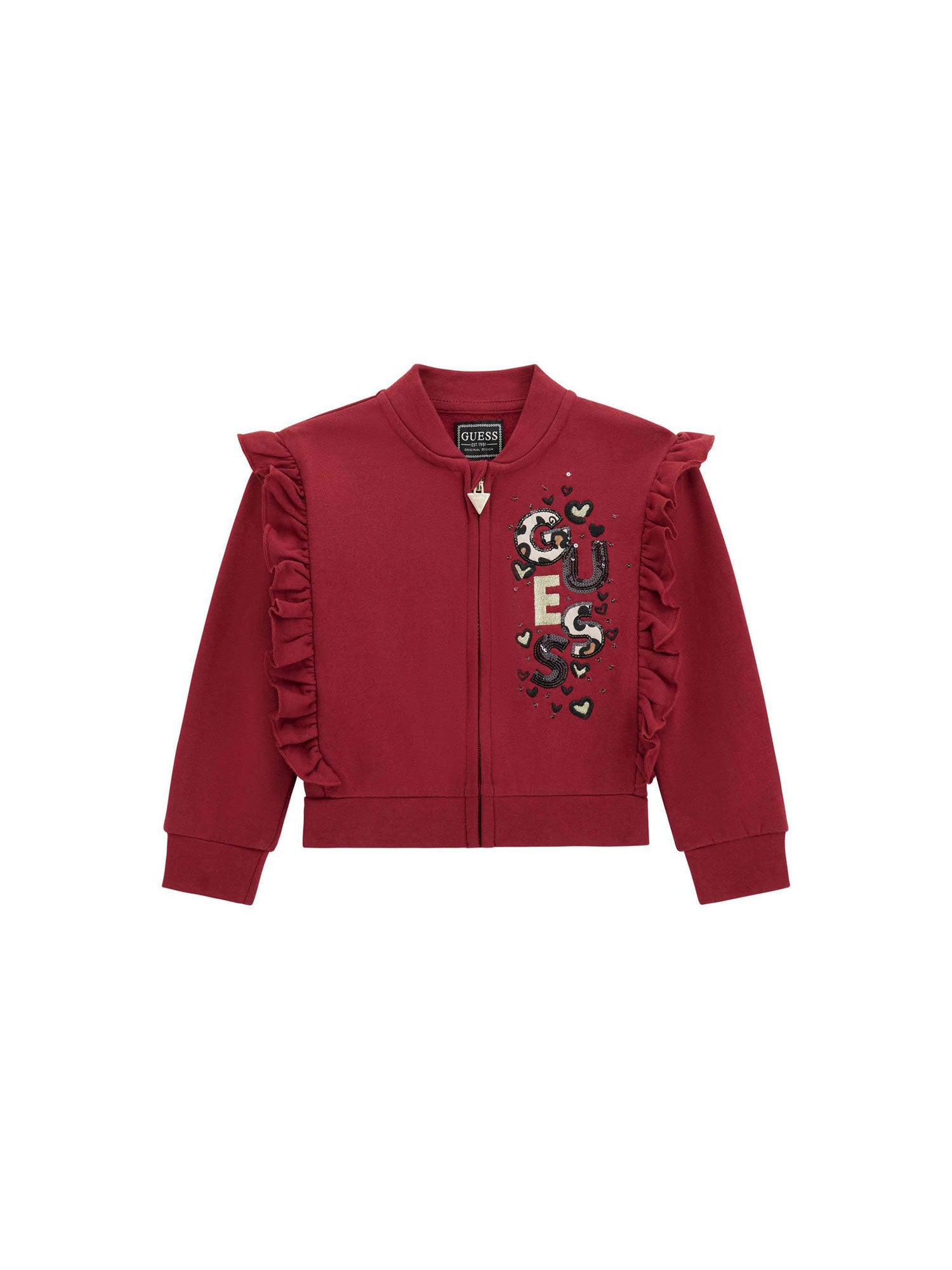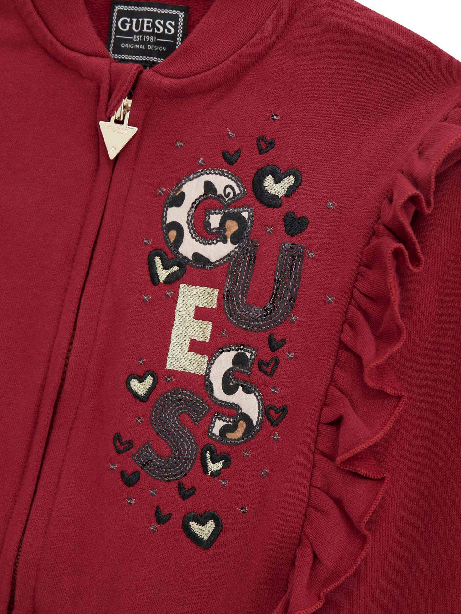 Felpa con zip Guess bambina con rouches e ricamo logo rosso