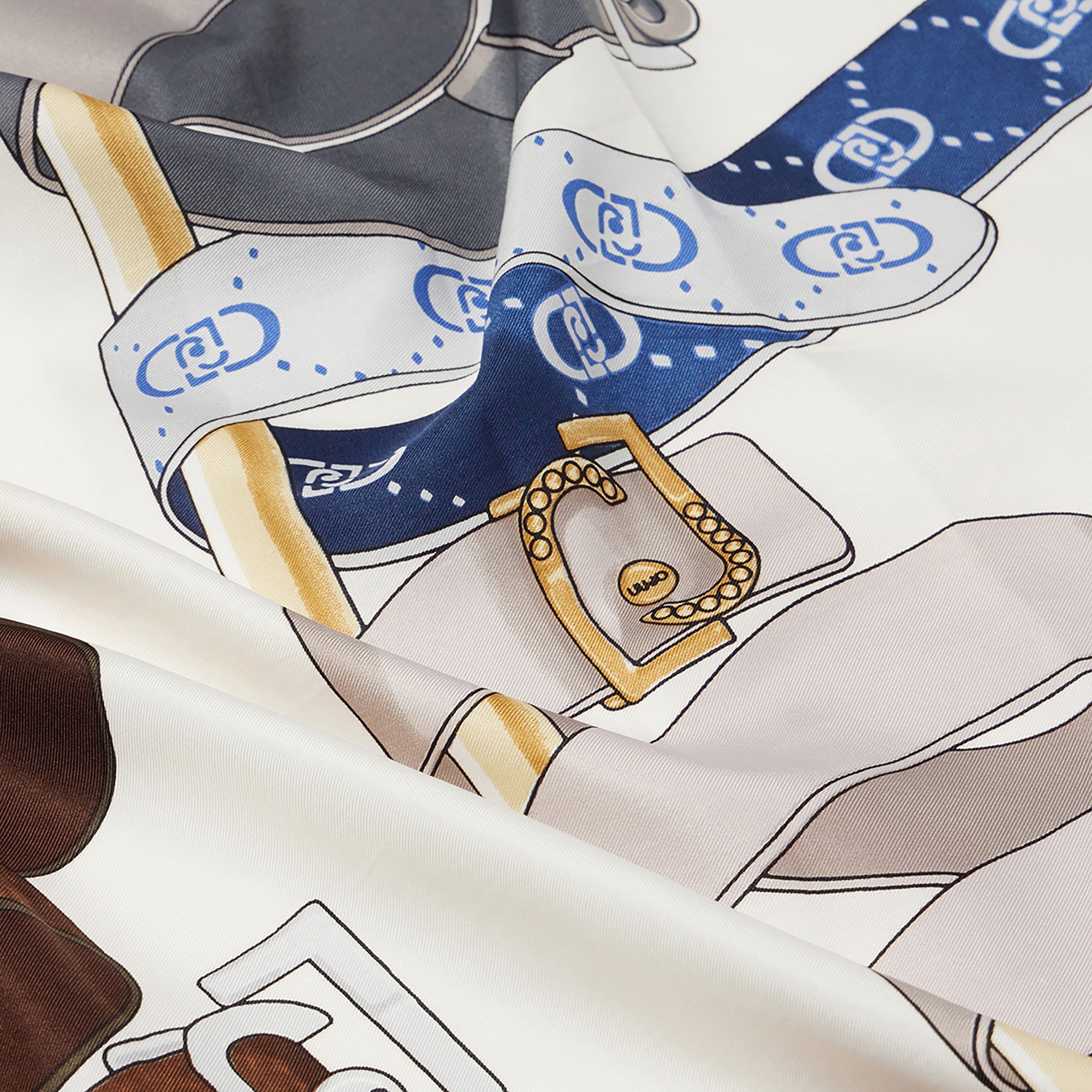 Foulard Liu Jo, modello con stampa e motivo grafico con logo. Ispirato ai dettagli del mondo del fashion, è un mix di eleganza e personalità. Ideale per esaltare i tuoi look.